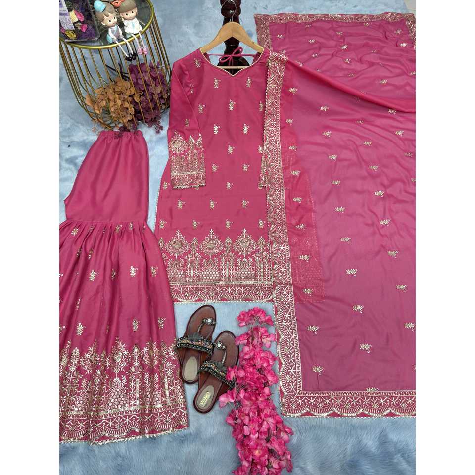 Aarohi Designer Pure Heavy Simar Georgette Pink Top & Plazzo Dupatta Set for Women Size m Party Wear