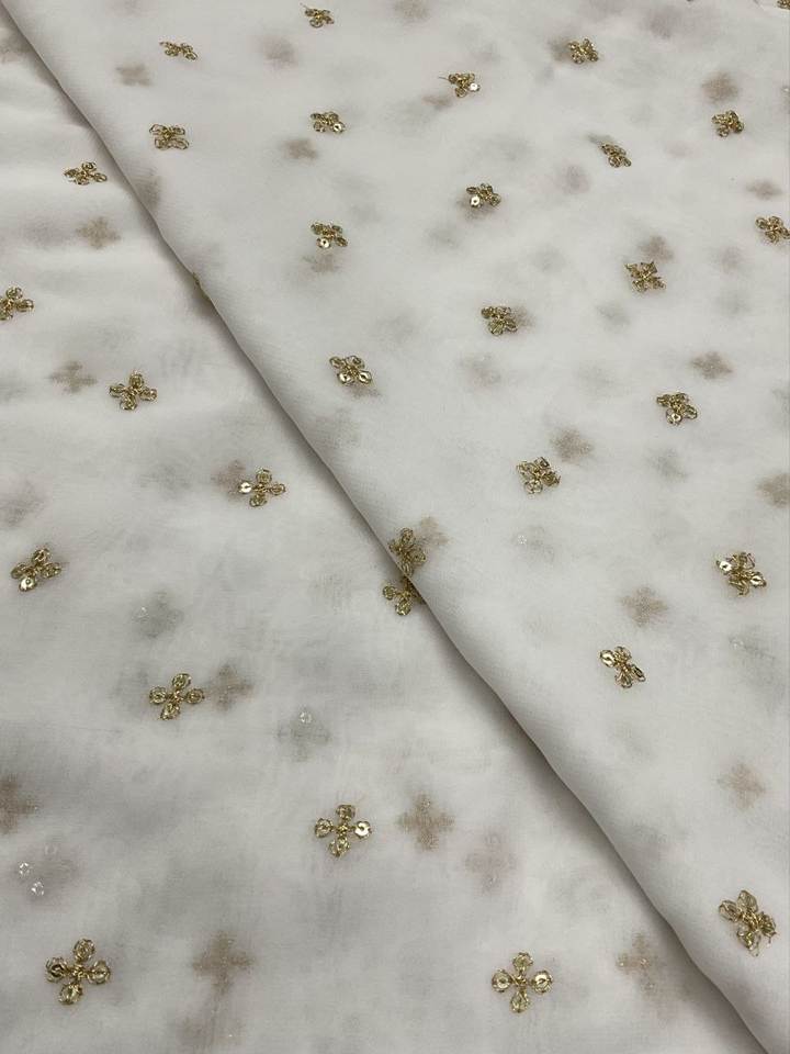 Pure Indian Ethnic Georgette Butti Fabric for Girls Heavy Embroidered Breathable Kurti Wear Woven Knitted Technique Plain Style