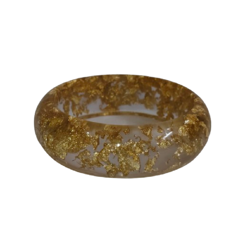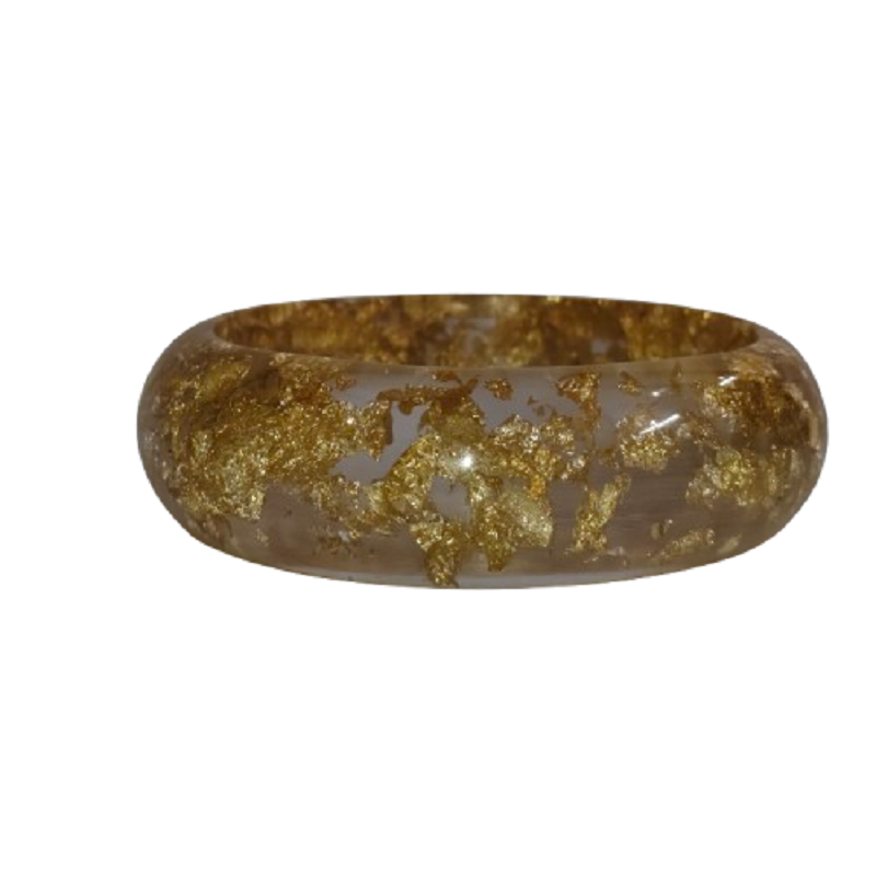 Pure Luxury Gold Foil Inlay Clear Resin Bangle Chunky Transparent Acrylic Bracelet with Sparkling Gold Leaf Accents Durable