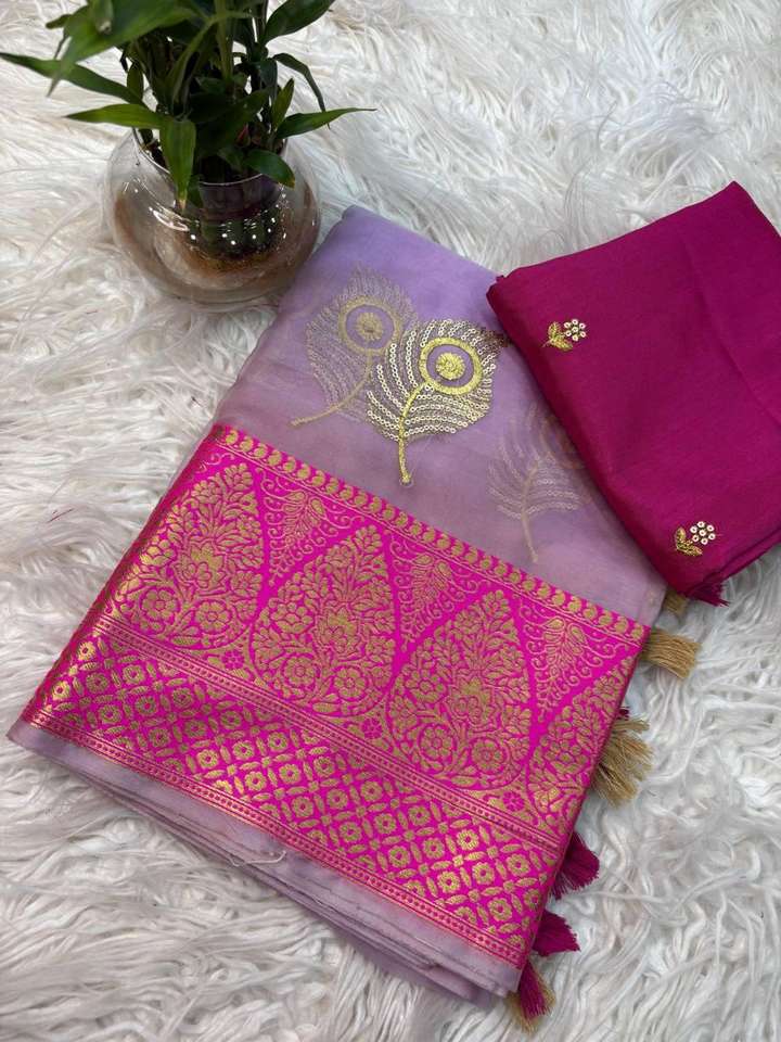 Pure Silk Organza Jacquard Kanchipuram Rani Jacquard Border Party Saree with Golden Zari Work Wrinkle Free & Quick Dry
