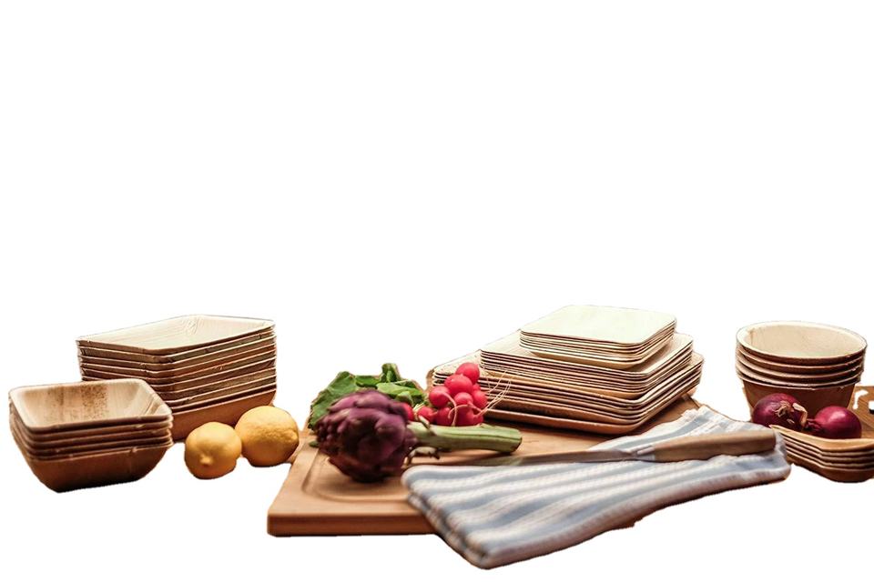 Pure Quality Disposable Areca Leaf Plates and Tray One Time Use Plastic Dishes From India Manufacturer Charger Type