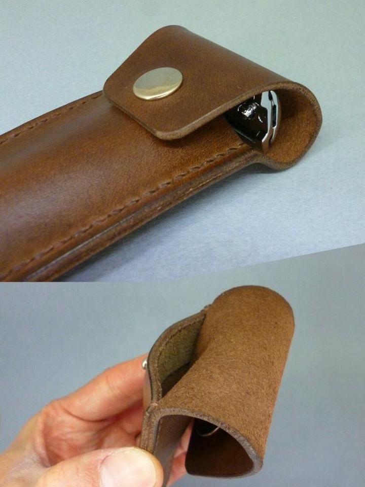 Customizable OEM Pure Sheepskin Pouch Case Double Edge Shaving Razor Sharpening Holder Protection Safety Tool Leather Sheath