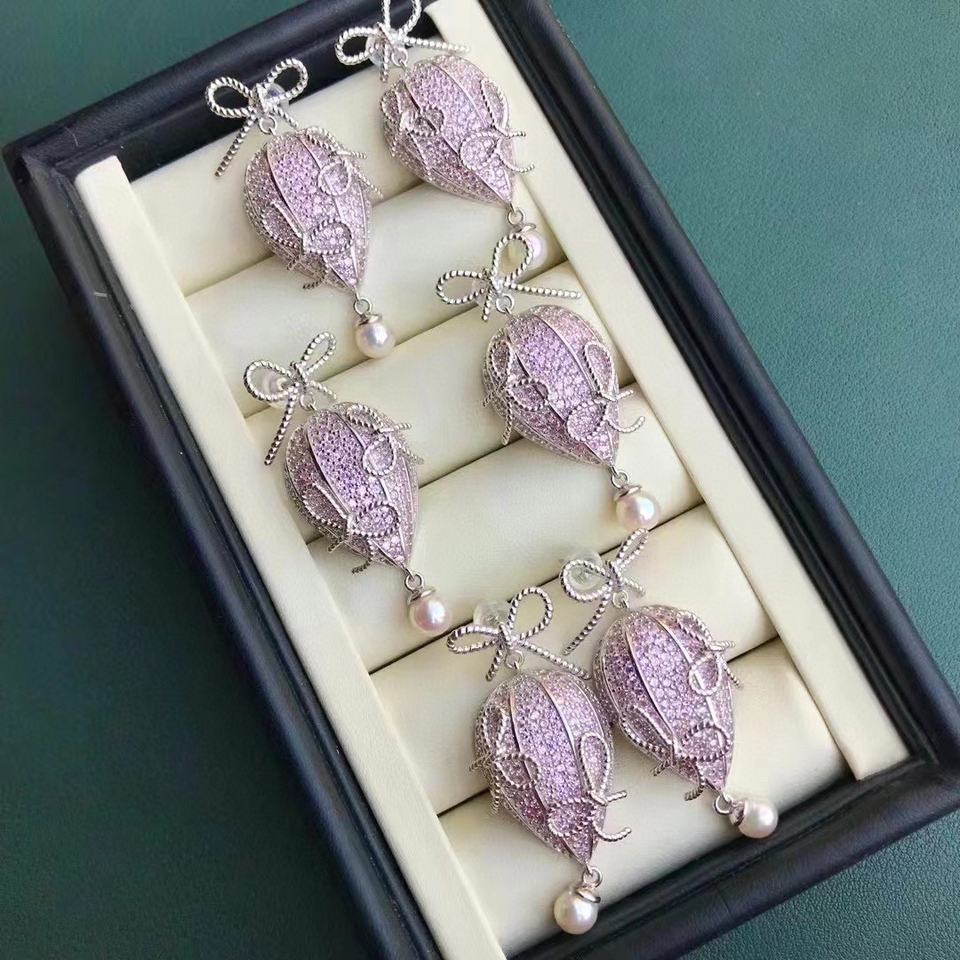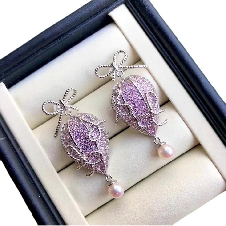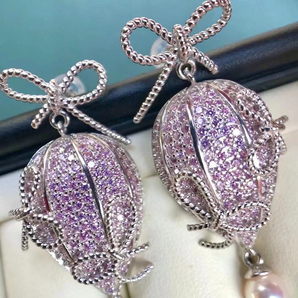 Pure Silver Natural Pearl Dangle Earrings for Spring Summer 10-9mm Almost Flawless Round Birthday Gift