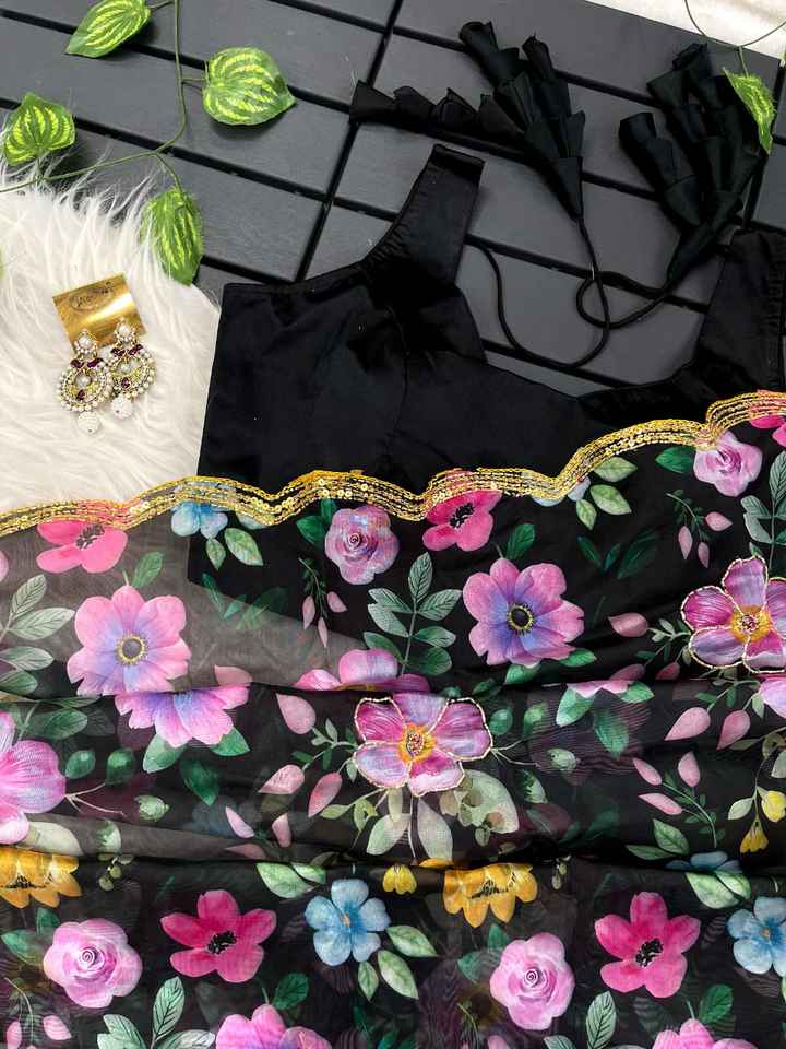 Pure & Soft Organza Silk Khatli Saree Amazing Floral Prints & Heavy Handwork Indian & Pakistani Clothing