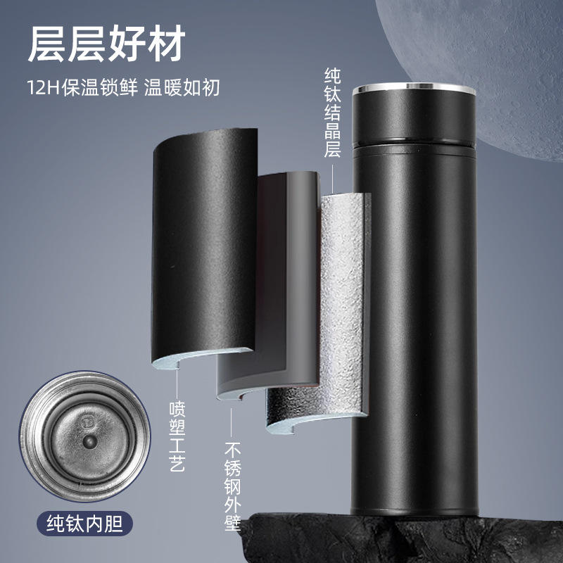 Pure Titanium Business Thermos Cup 480Ml Vacuum Straight Body Gift Water Bottle Customizable For Office Use