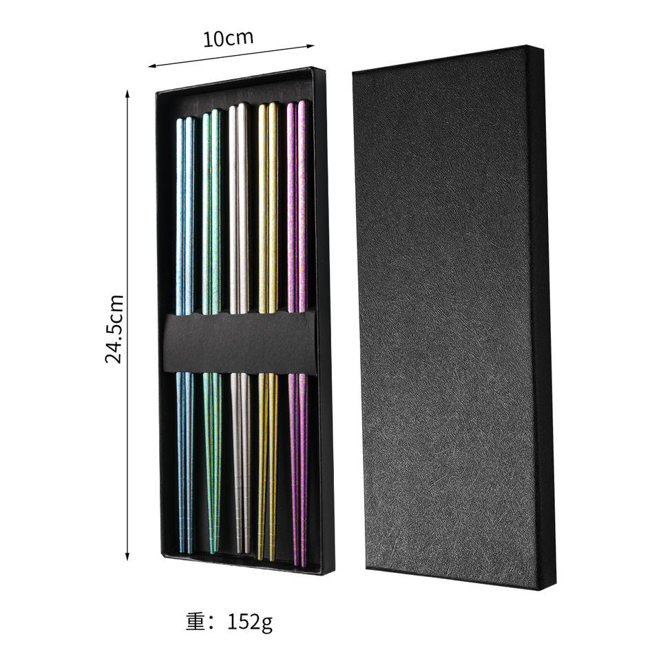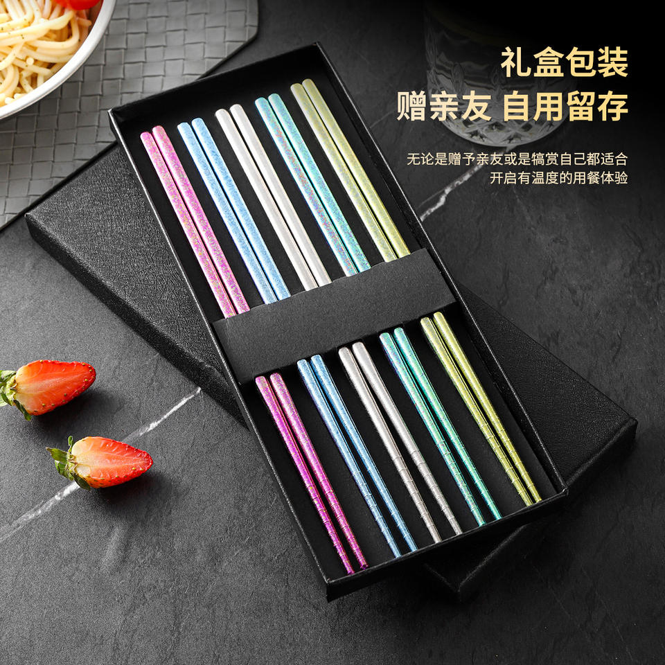 Pure Titanium Chopsticks Set 5 Pairs Colorful Gift Box Packaging Heat Resistant Antibacterial Round Tip For Home And Business
