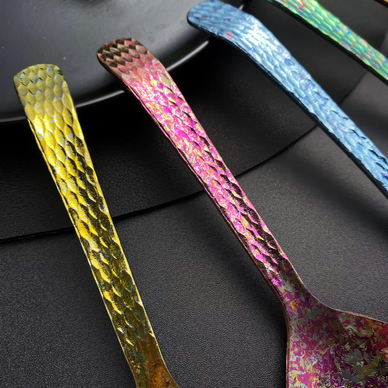 Pure Titanium Spoon Round Lightweight Camping Utensil Crystallized Ice Flower Design For Outdoor Use