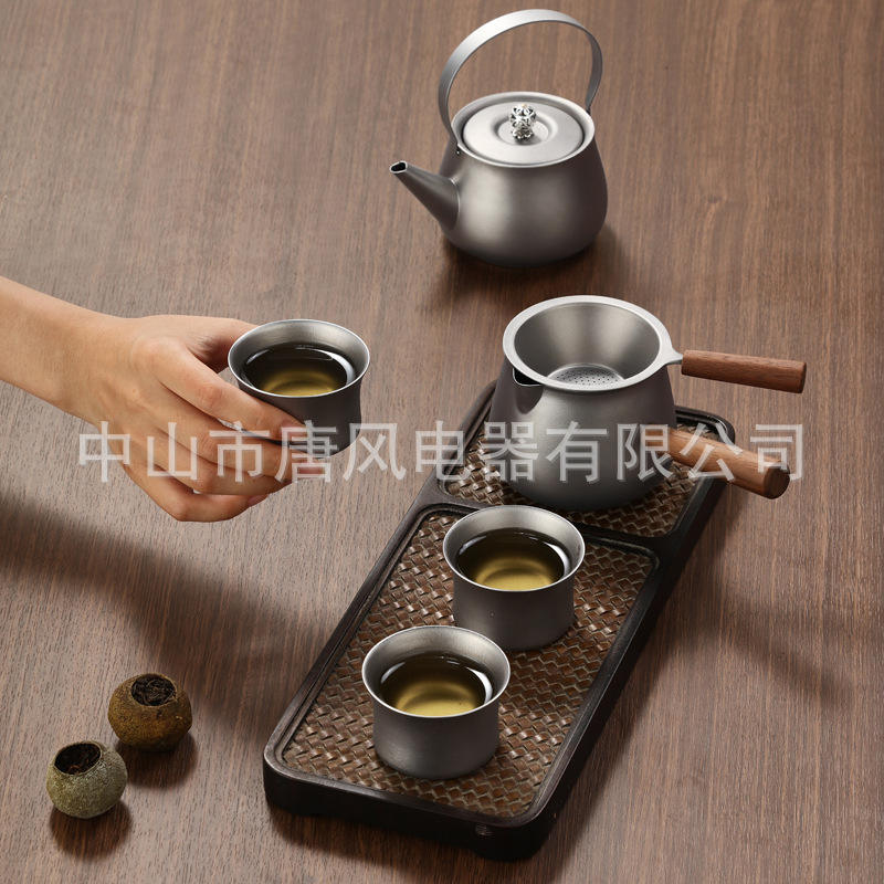 Pure Titanium Tea Set Portable Home Gift Box Tea And Water Separation Design Titanium Gray