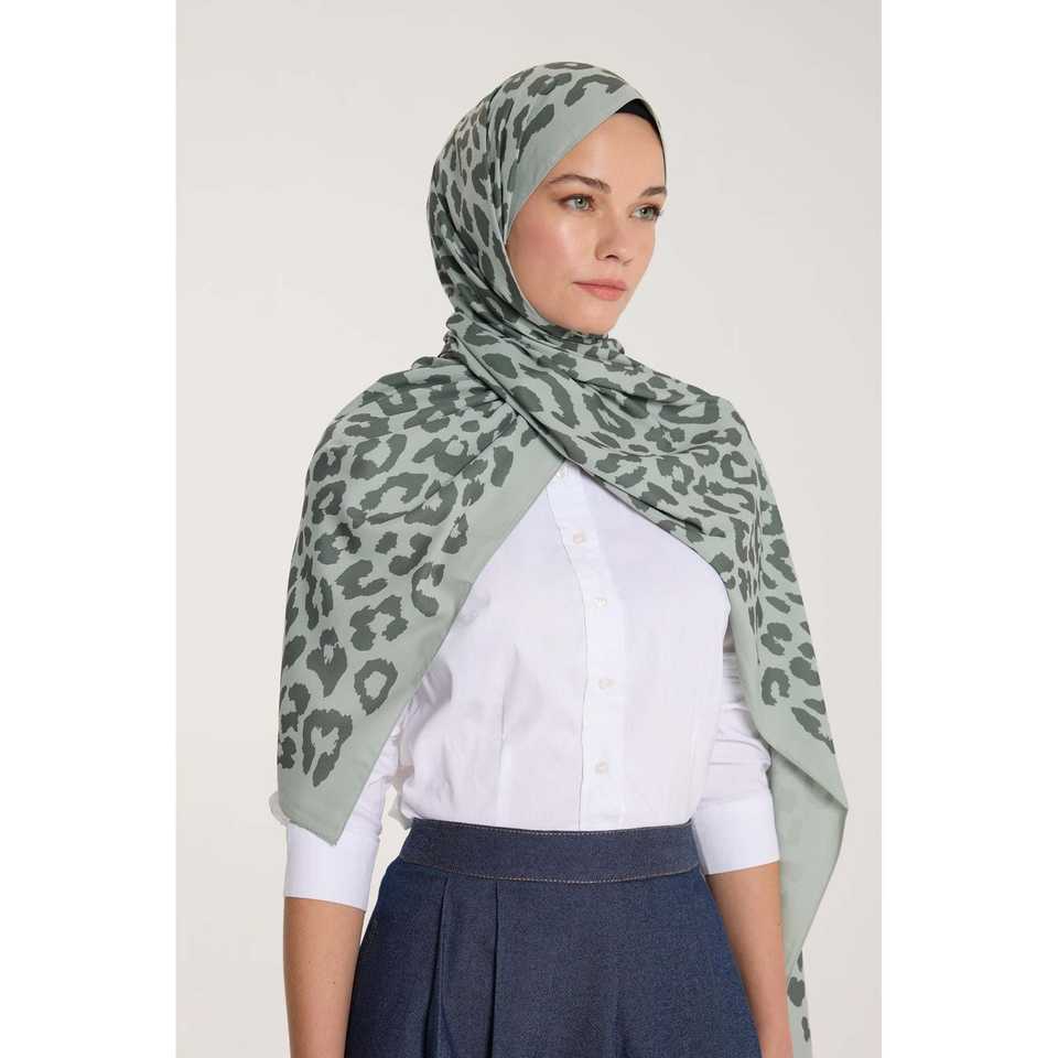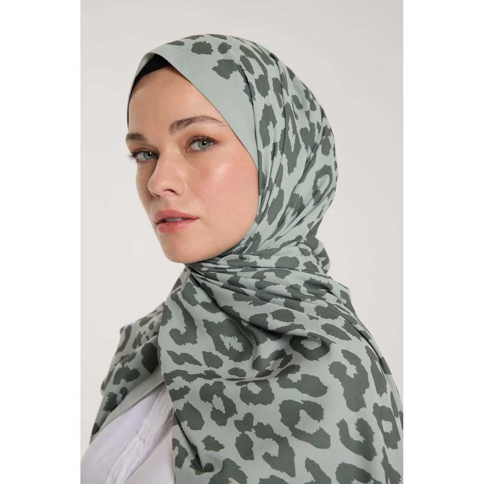 Pure Tone Light Green Leopard Print Scarf Sun Protection Veil with Dark Green Tones