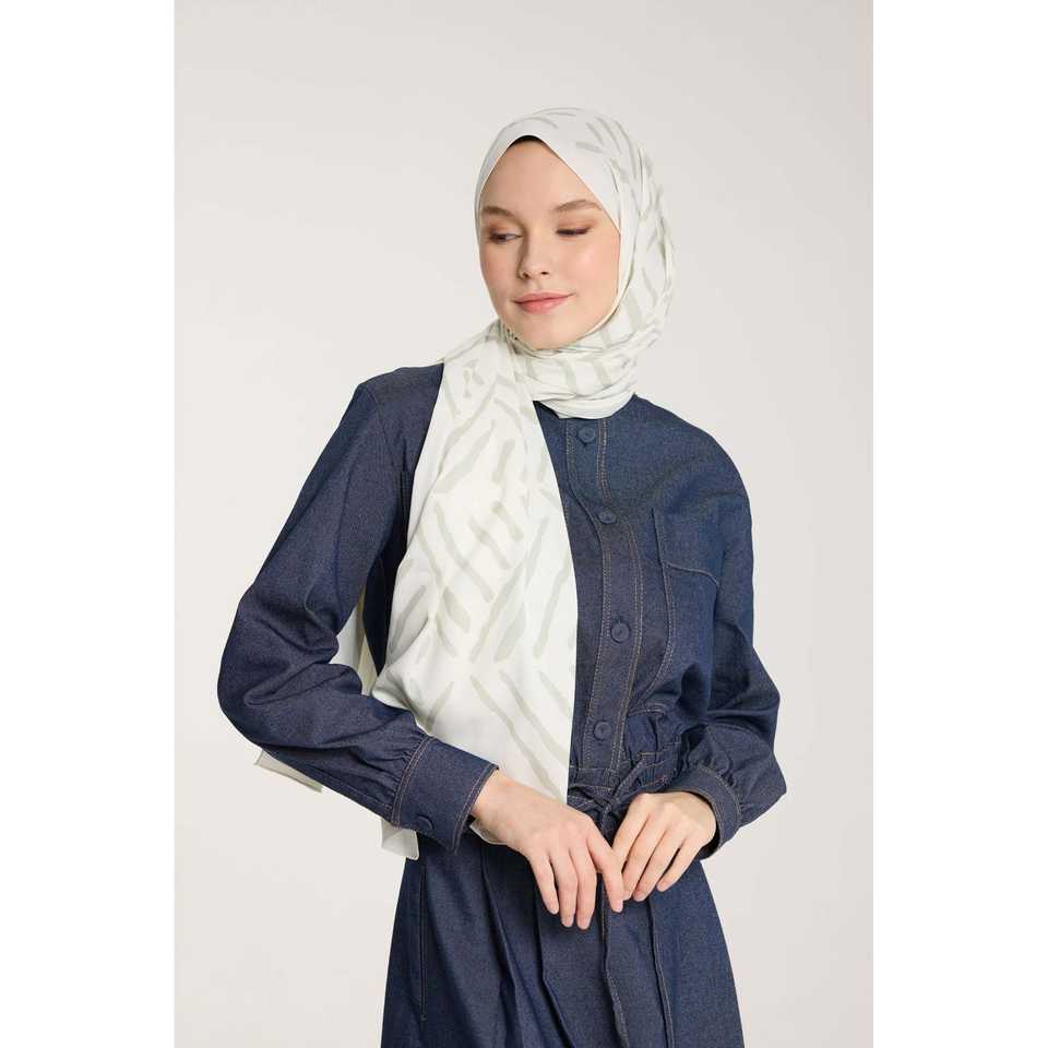 Pure Tone Luxury Satin Silk Scarf Custom Designer V Pattern Long Party Style for Spring/Summer-Light Green & Ivory