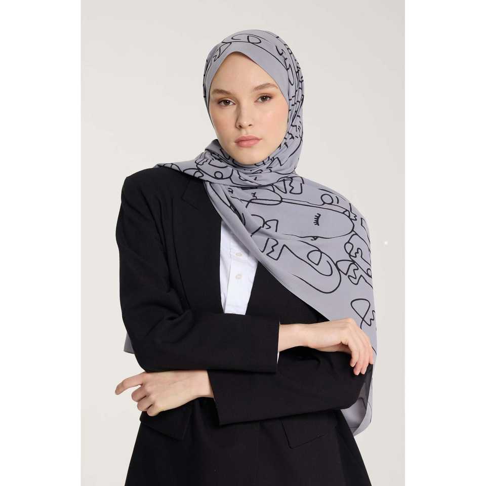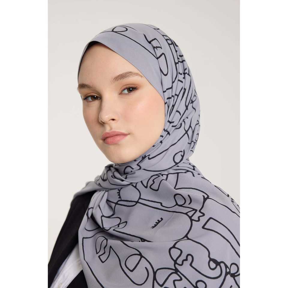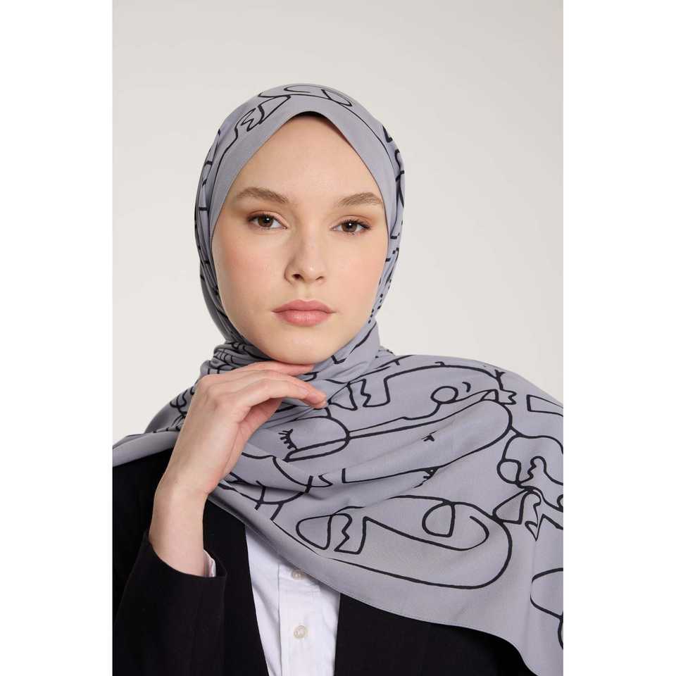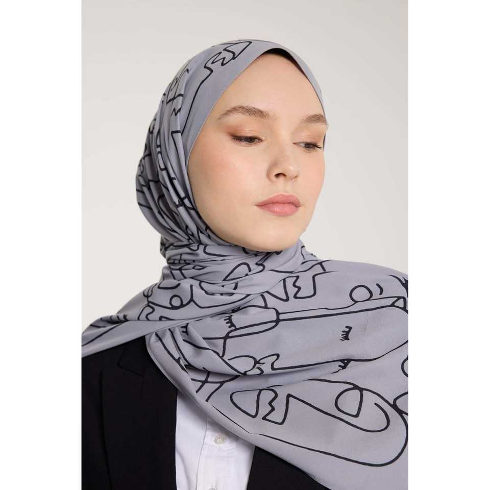 Pure Tone Scarf with Marginal Pattern Silver and Black Modest Tops