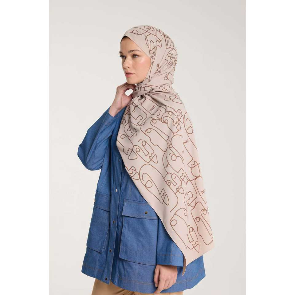Pure Tone Silk Scarf Square Brown Stone Pattern Digital Printing Women Multi Functional
