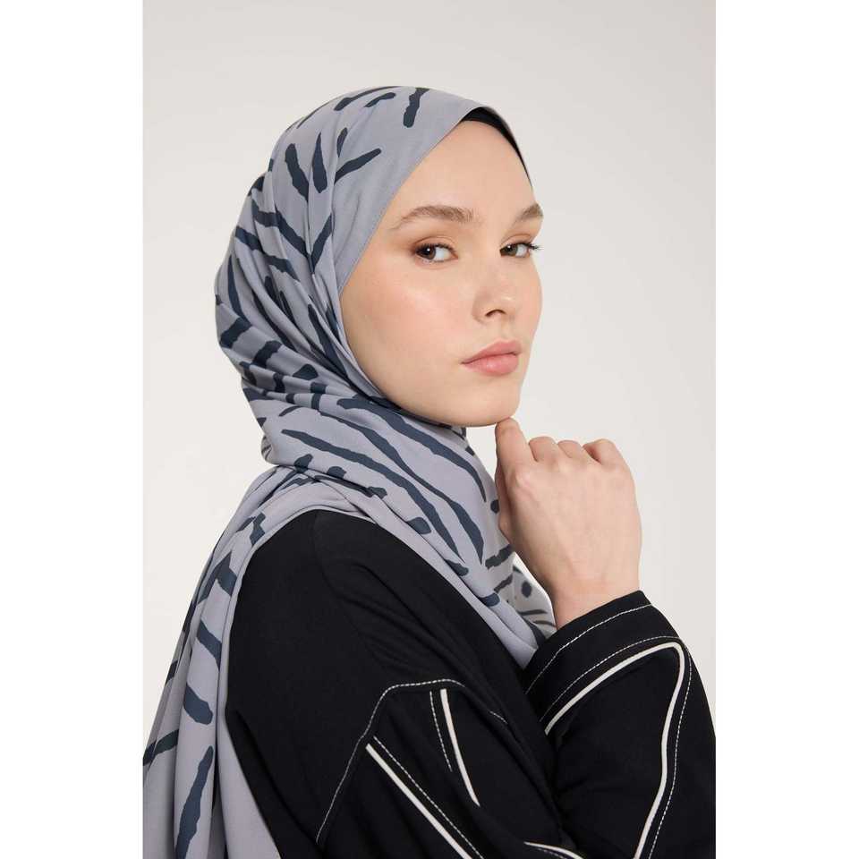 Pure Tone V-Shape Silver & Smoke Grey Scarf Hat & Glove Set