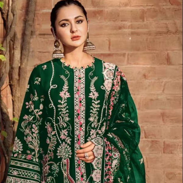 Pure Velvet Sal-war Suit Heavy Embroidery Ethnic Style Featuring Butterfly Net Dupatta with Rayon Pant Pakistani Collection