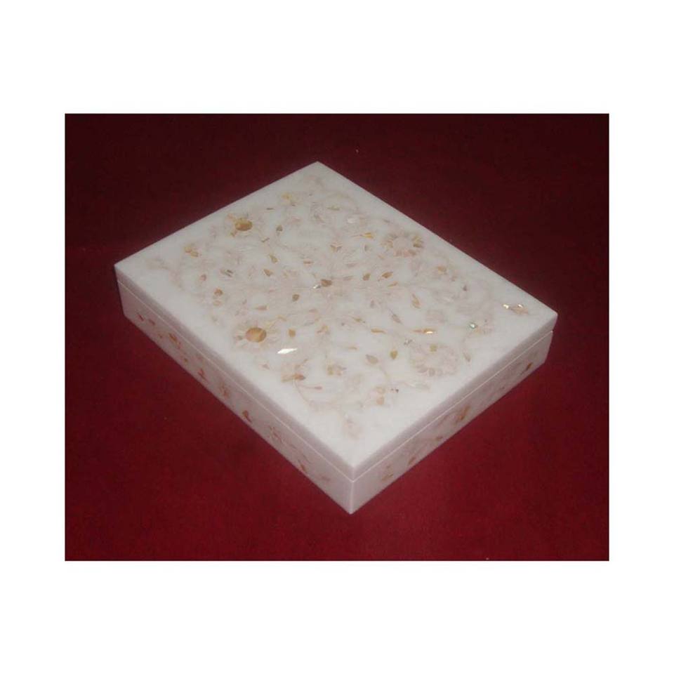 Pure White Marble Inlaid Boxes With Fine Finishing and Smooth Glossy Surface for Home Decoration Purpose