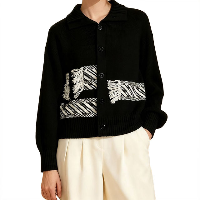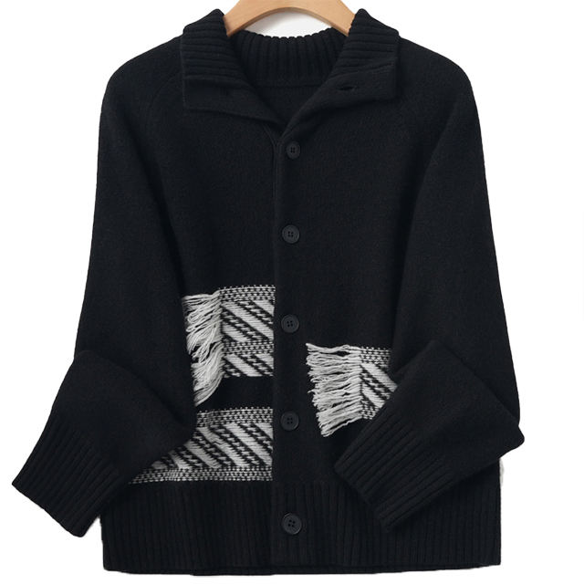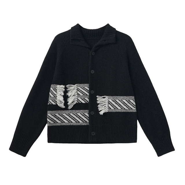 Pure Wool Dashed Line Sweater Knit Cardigan Women Autumn Winter New Style Women's Clothing Reversible Stand Collar Wool Sweater