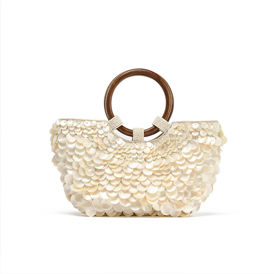 Pure handmade fairy shell handbag 2025 summer new wooden handle chain shoulder messenger bag