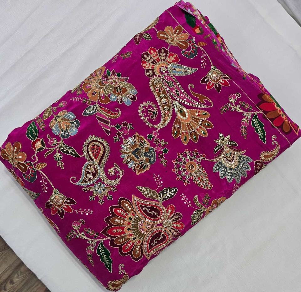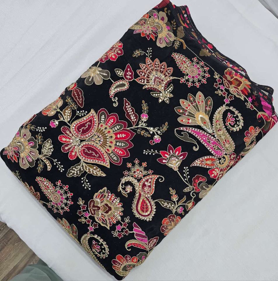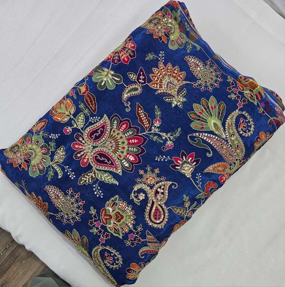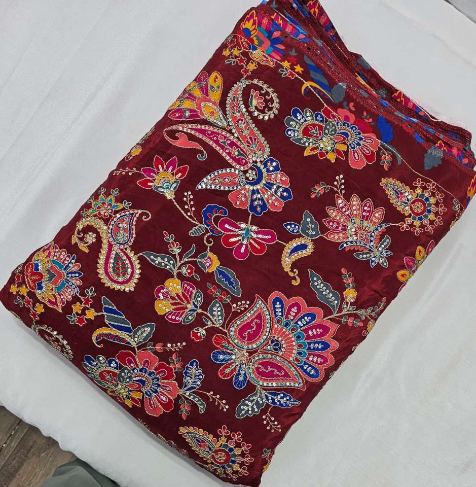 Pure natural crep position print embroidery work viscose fabric make to fancy dress material