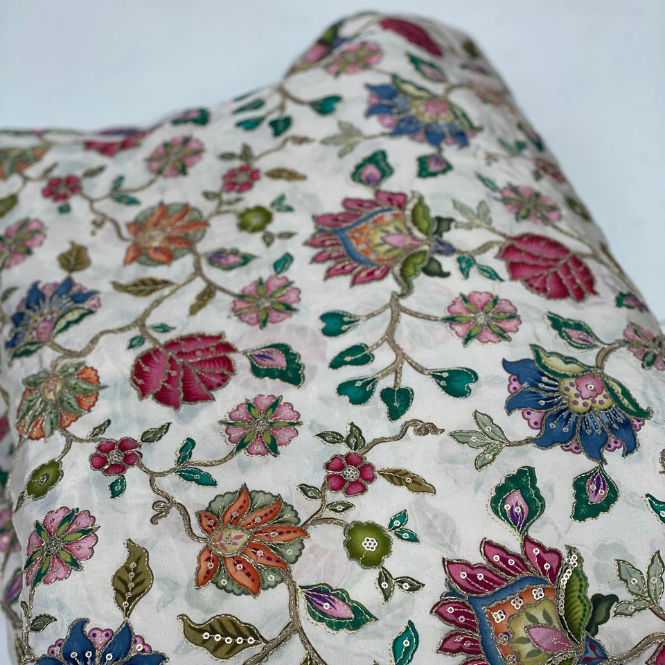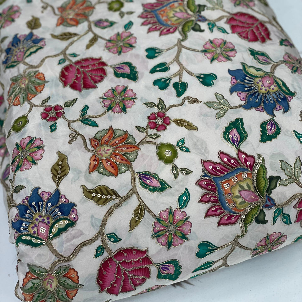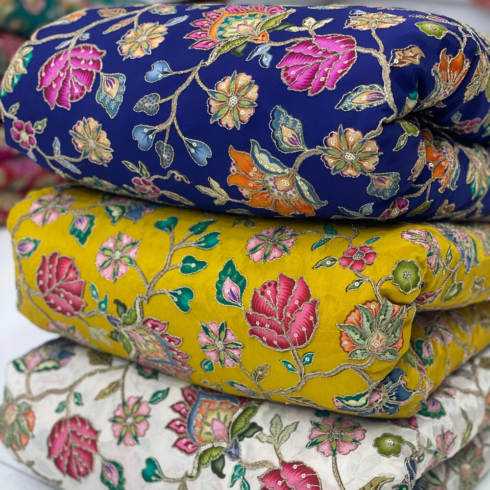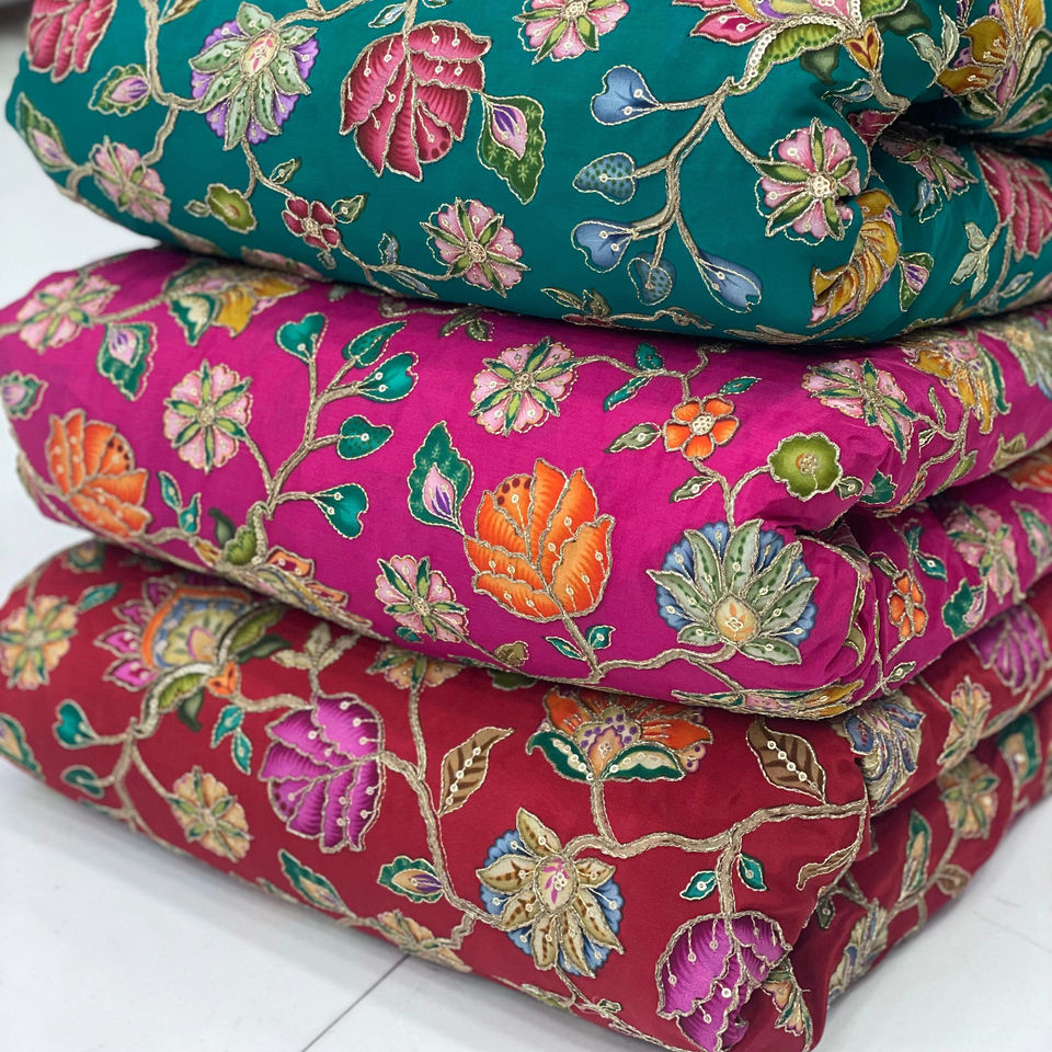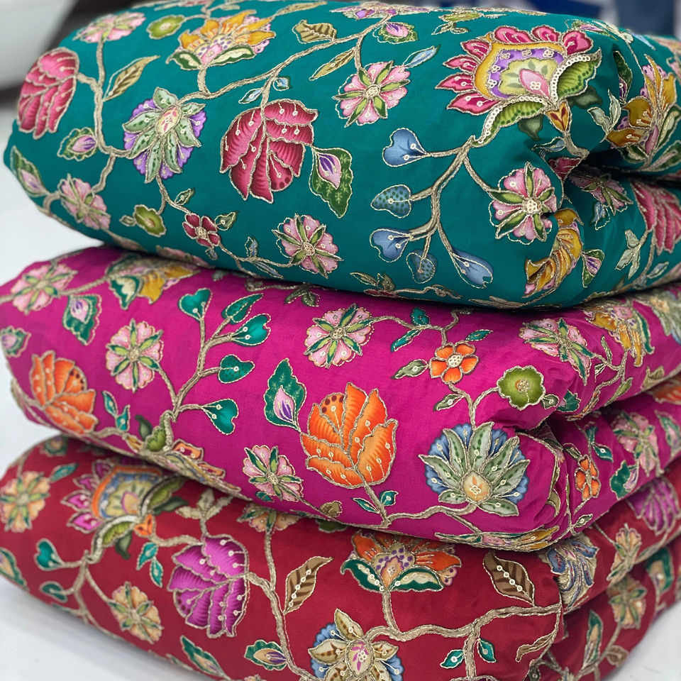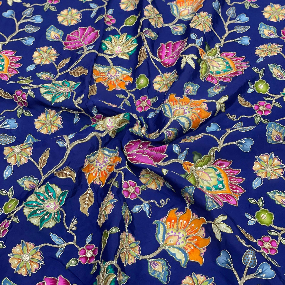 Pure natural crep position print embroidery work viscose fabric make to fancy dress material