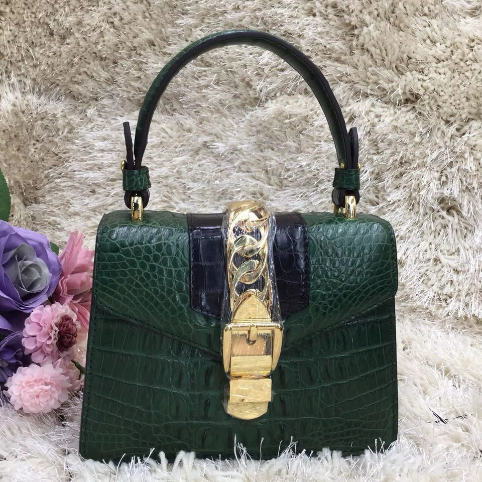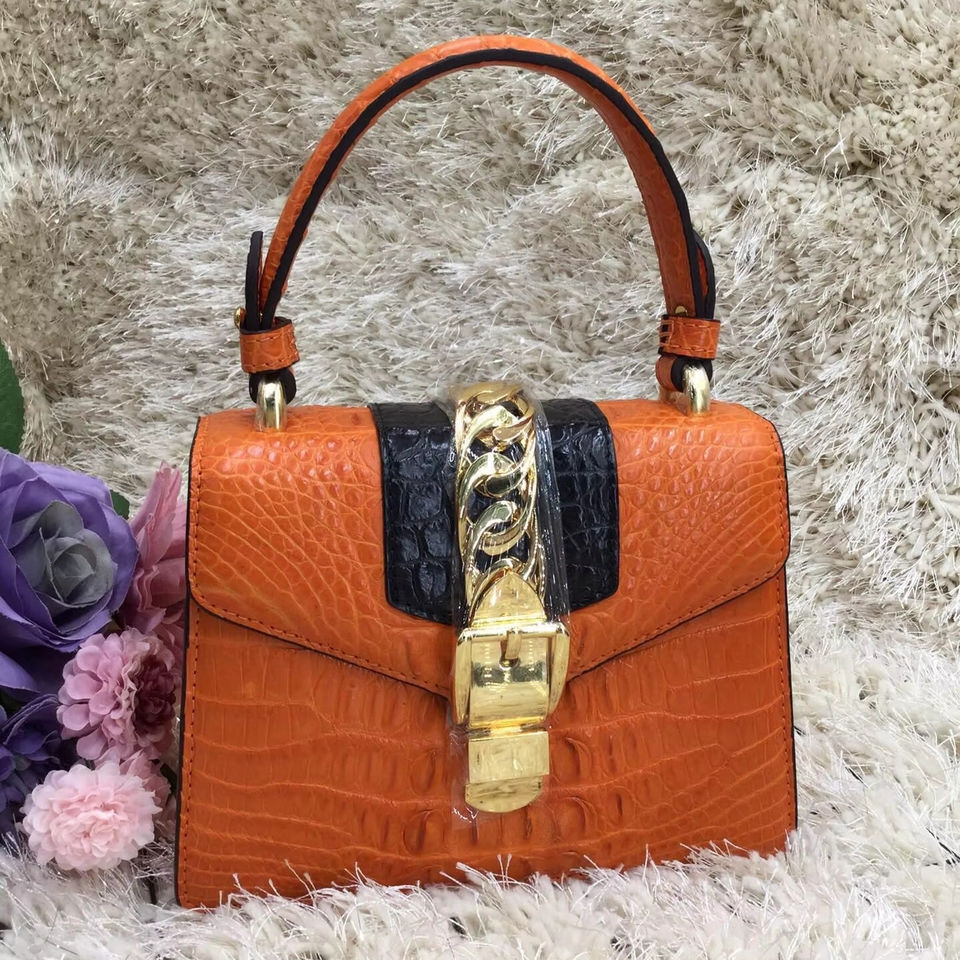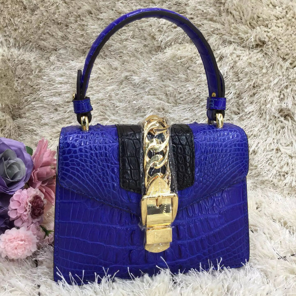 Pure water color crocodile skin leather handbag, shoulder bag, crossbody bag, small square bag