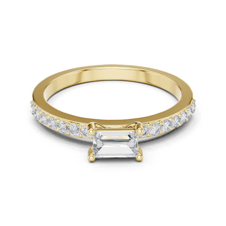Purecarat Emerald Cut Diamond Engagement Rings with Pave Band Shop Premium Diamond Rings