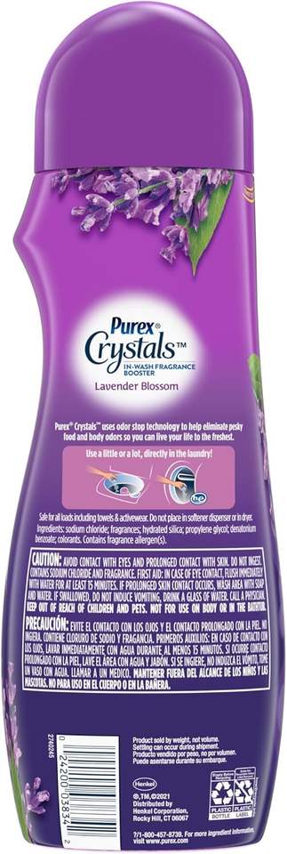 Purex Crystals In-Wash Scent Booster, Lavender Blossom, 21 oz (Pack of 4), Long-Lasting Freshness & Odor Elimination Technology