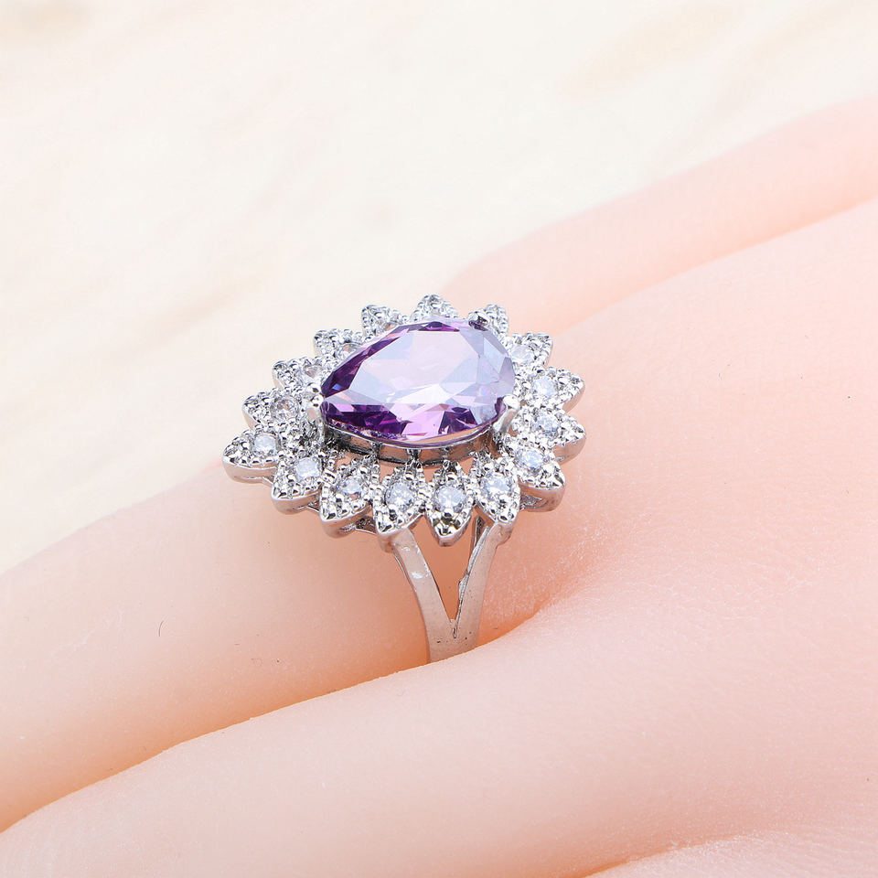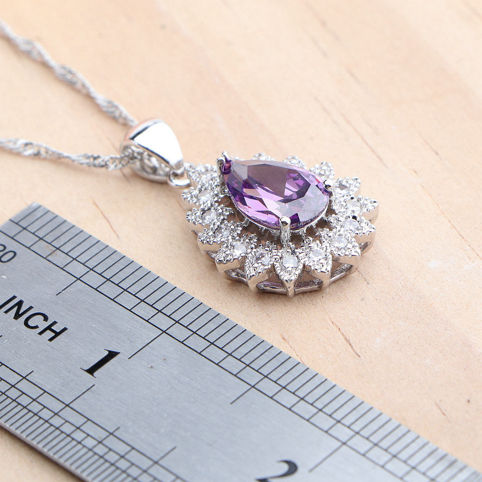 Purple Amethyst 925 Silver Bridal Jewelry Sets for Women Wedding Costume CZ Stones Earrings Ring Bracelet Pendant Necklace Set