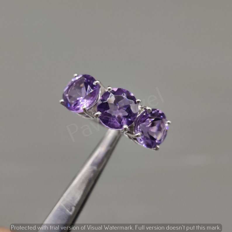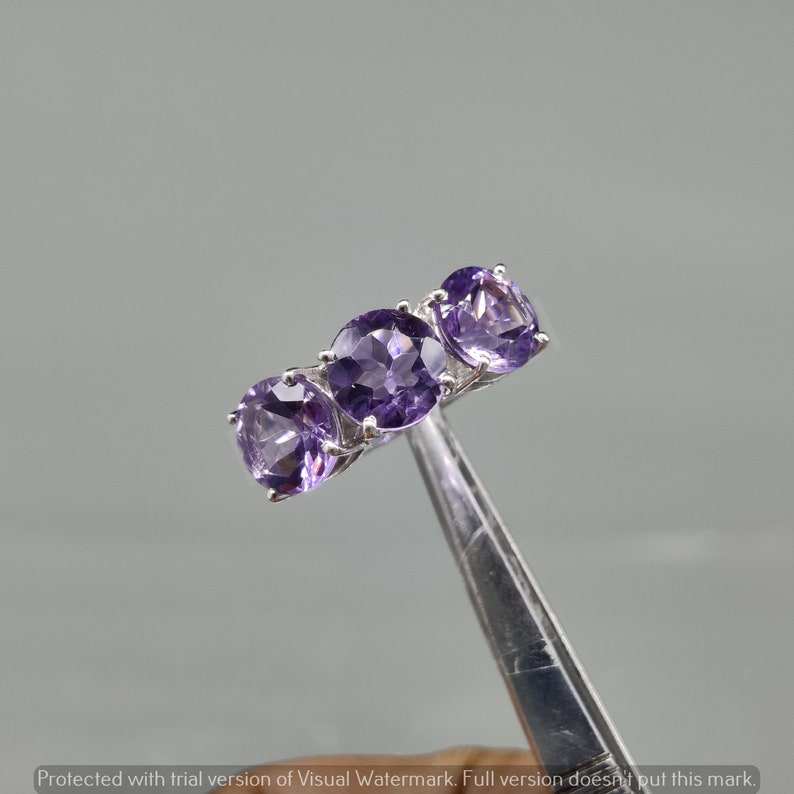 Purple Amethyst Diamond & Pearl 925 Sterling Silver Half Eternity Ring Fine Jewelry with Triple Gemstone February Birthstone