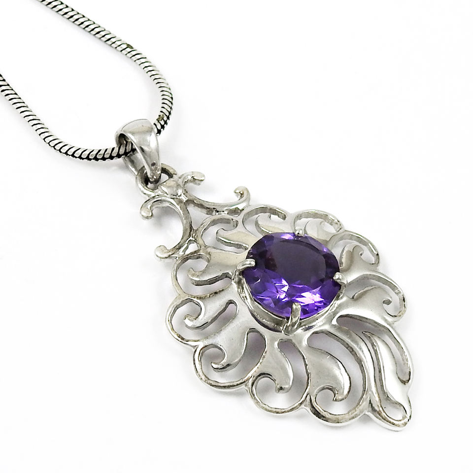 Purple Amethyst Gemstone 925 Sterling Silver Natural Gemstone Antique Look Pendant Handmade Fine Jewelry Direct Factory Price
