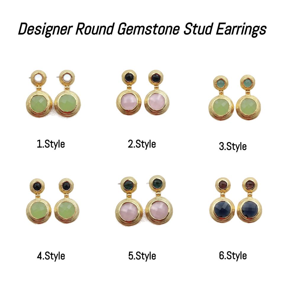 Purple Amethyst Gemstone Earring Gold Plated Handmade Round Iolite Gemstone Earring Gold Plated Double Gemstone Stud Earrings
