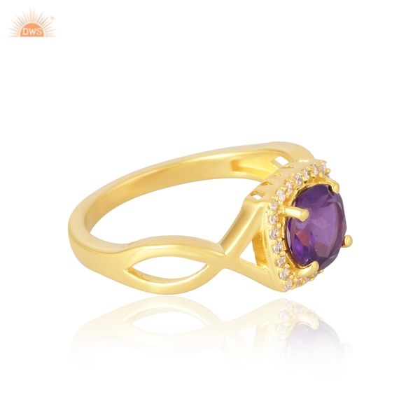 Purple Amethyst Gemstone With Cubic Zirconia 14k Solid Gold Handmade Ring Engagement Wedding Bridal Ring Gift for Her