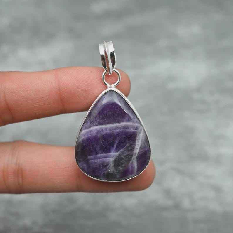 Purple Amethyst Pendant Necklace Natural Gemstone 926 Sterling Silver Handmade Jewelry Elegant Gift