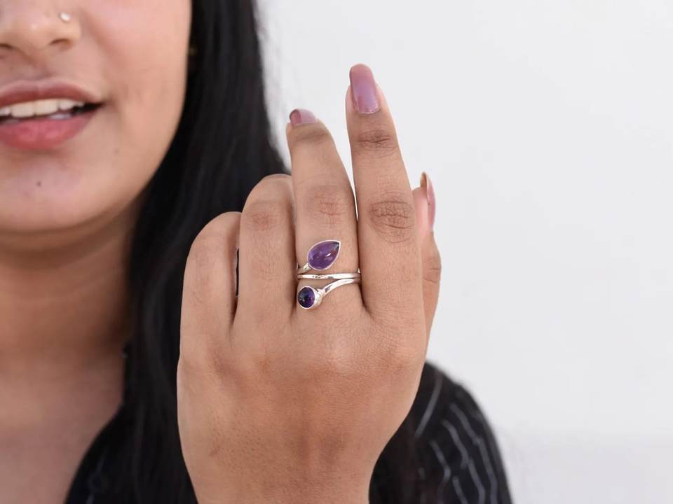 Purple Amethyst Silver Ring 925 Solid Sterling Silver Jewelry Double Stone Ring Handmade Amethyst Jewelry Statement Ring Gift