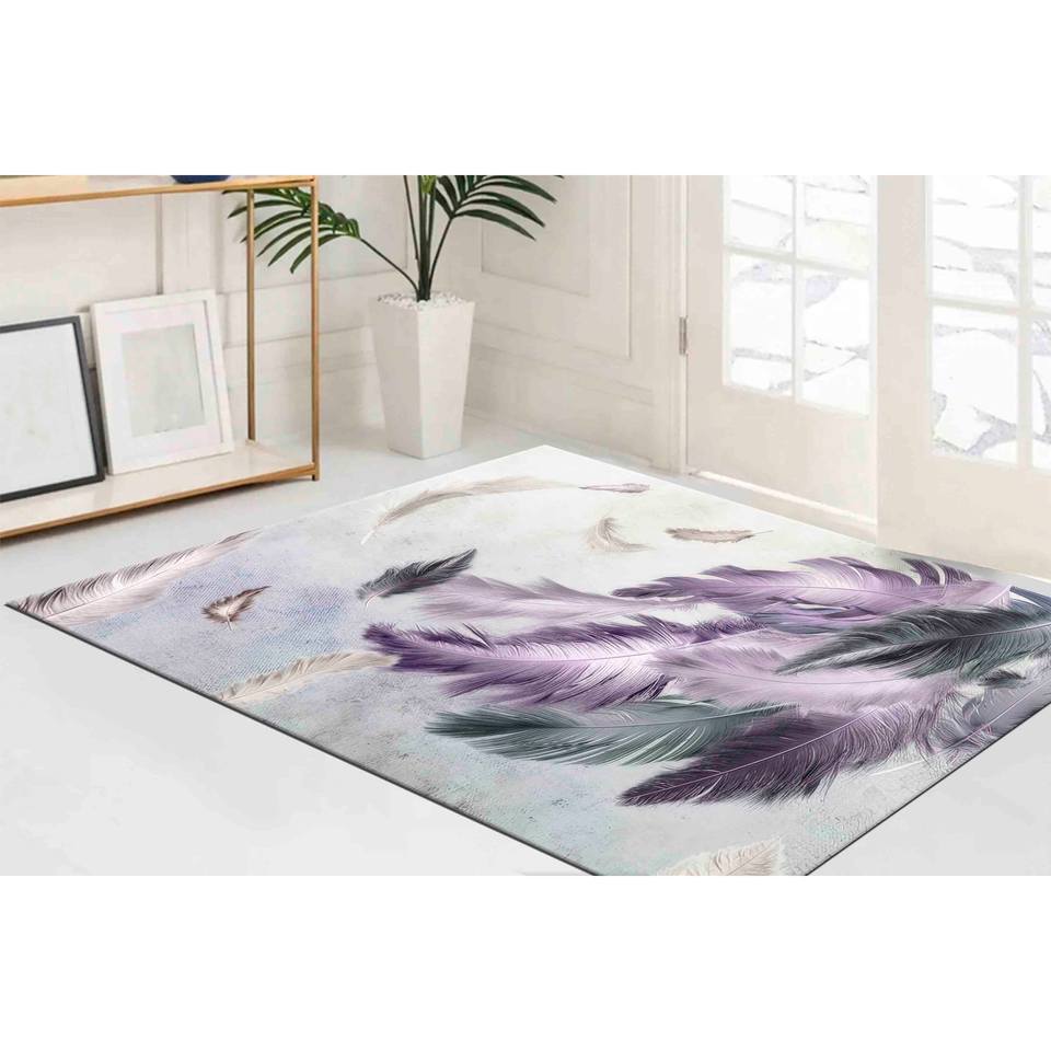 Purple And Gray Feather Painting Printed Rug - Modern Contemporary Luxury Rug,Velvet Rug