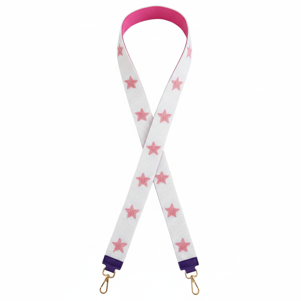 Purple Beaded Purse Strap Gold Stars Handmade Embroidered Cotton Accessory Elegant Bag Customization Bold Statement Style Gift