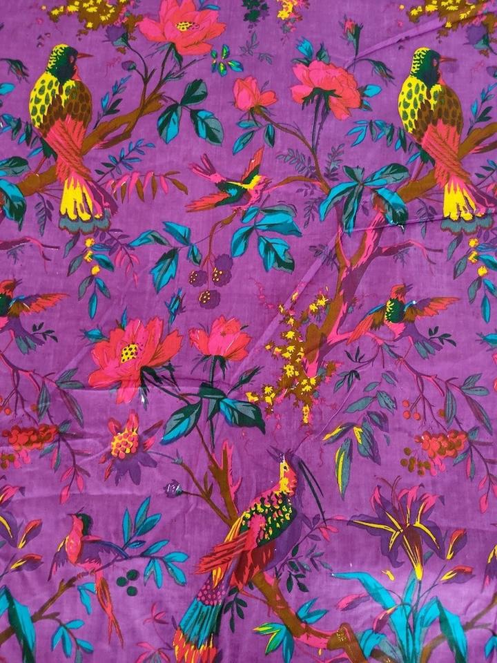 Purple Bird Print Cotton Fabric, Sewing Kimono Fabric, Dressmaking Banyans Fabric, Indian Fabric by the Yard, Craft Fabric, Robe