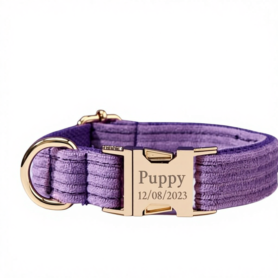 Purple Bowtie Set Personalized Leather & Nylon Rivet Dog Collar and Leash with Free Engraved Name for Wedding Gift