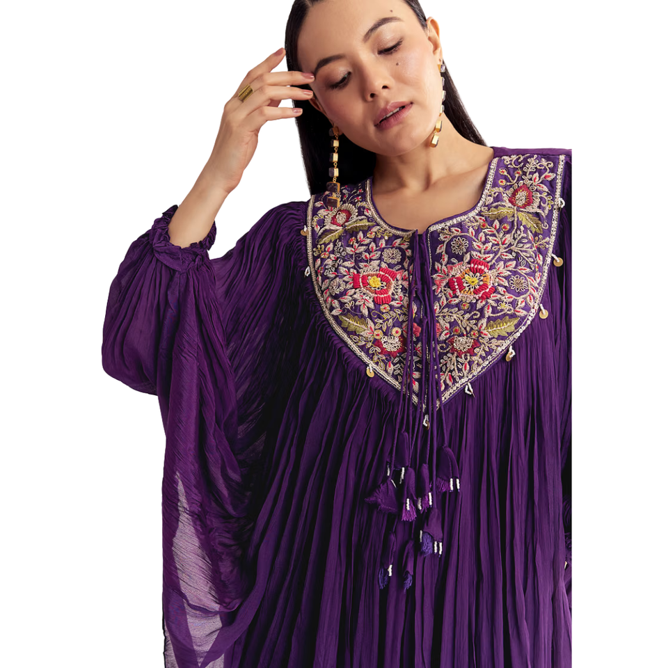 Purple Chinon Kaftan Kurta Palazzo Suit With Zardosi And Thread Work Wholesale Women Ethnic Apparel OEM Factory Custom Party