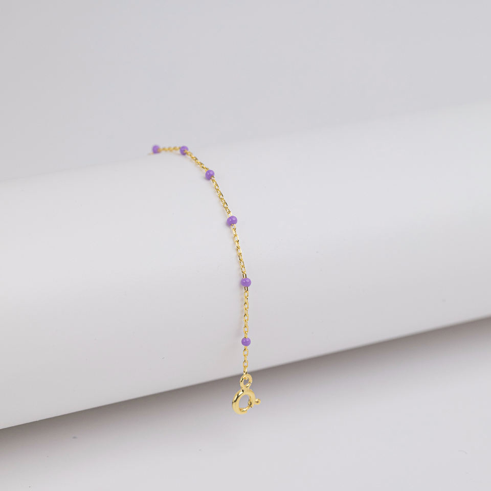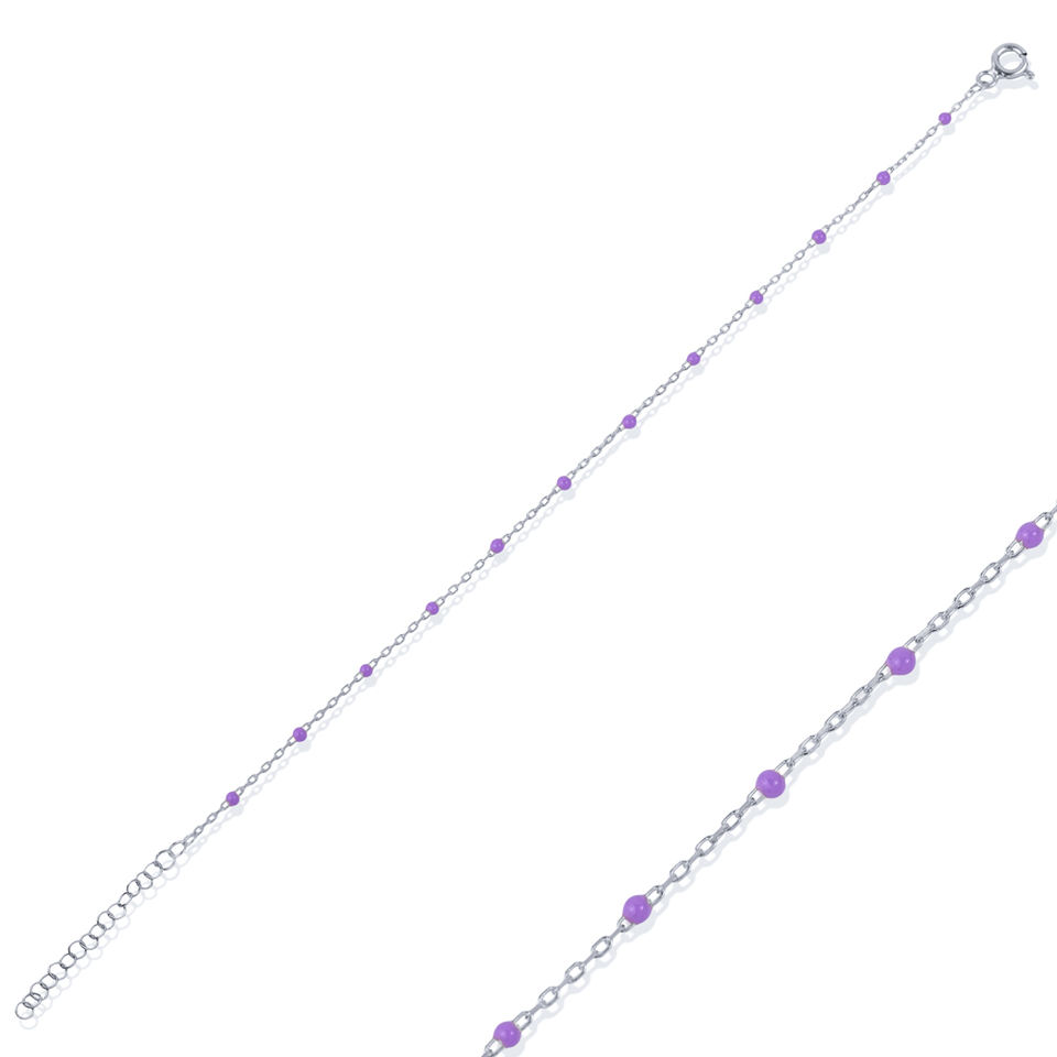 Purple Color Enamel Design Rhodium Plated Gold Plated Chain Bracelet Turkish Handcrafted Wholesale 925 Sterling Silver Jewelry