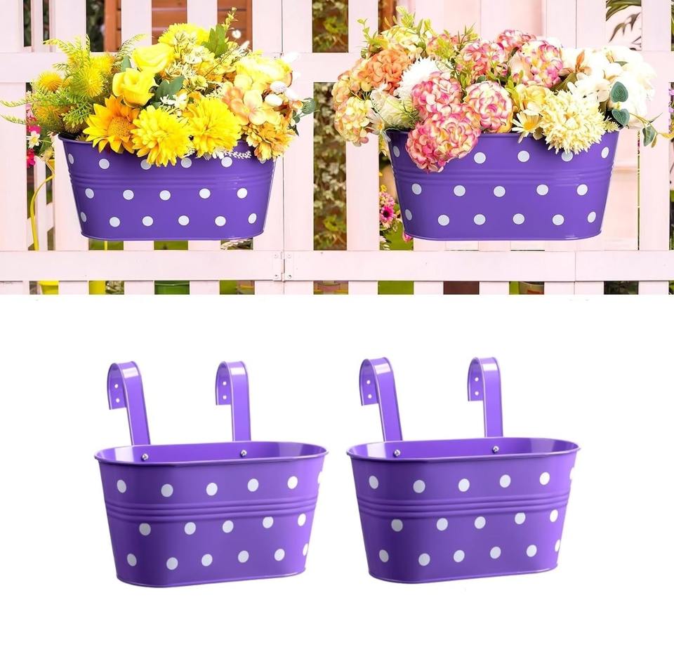 Purple Color Painted Galvanized Hanging Flower Pot Planter Durable Balcony Hanging Planter Basket for Indoor Outdoor Garden