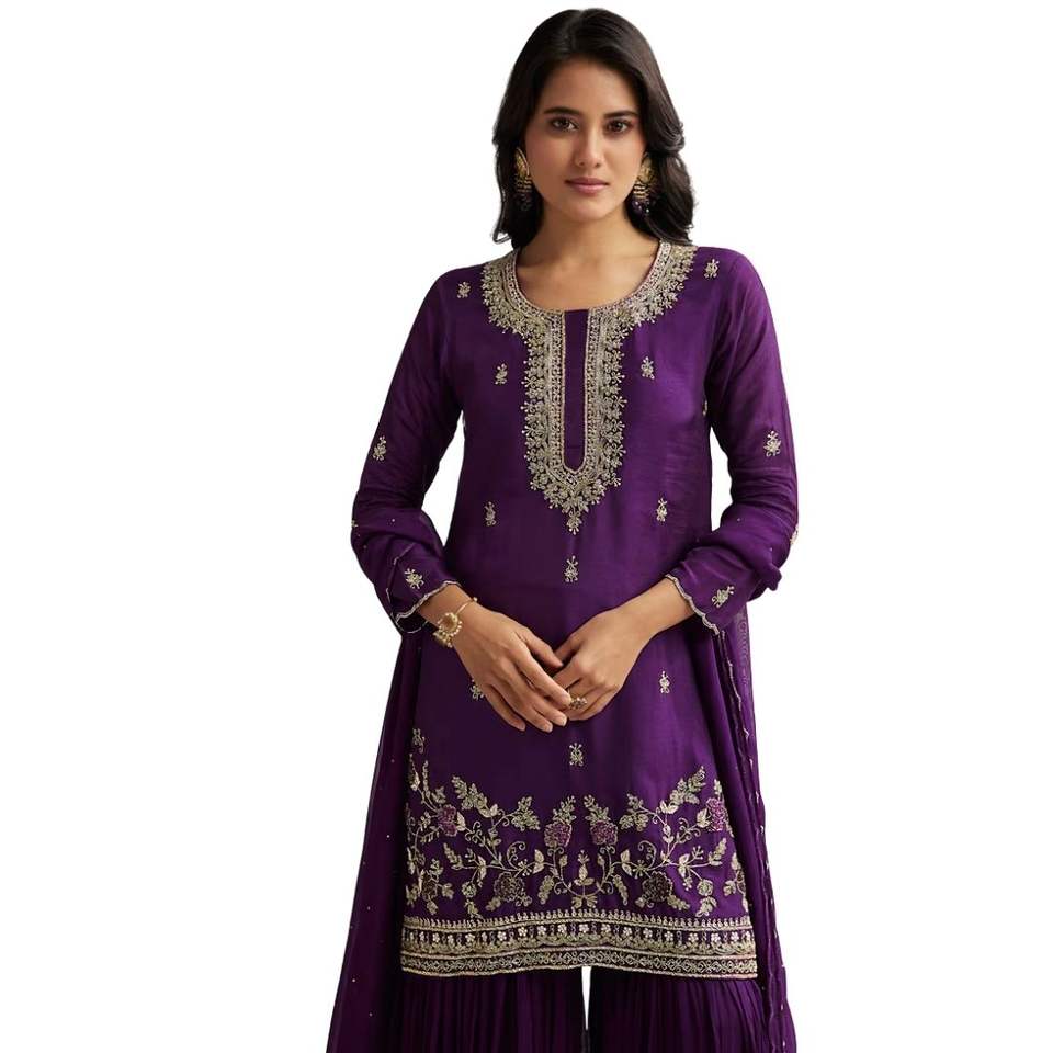 Purple Cut Dana Embroidered Sharara Suit with Dupatta for Elegant Party Wear and Traditional Indian Wedding Outfit