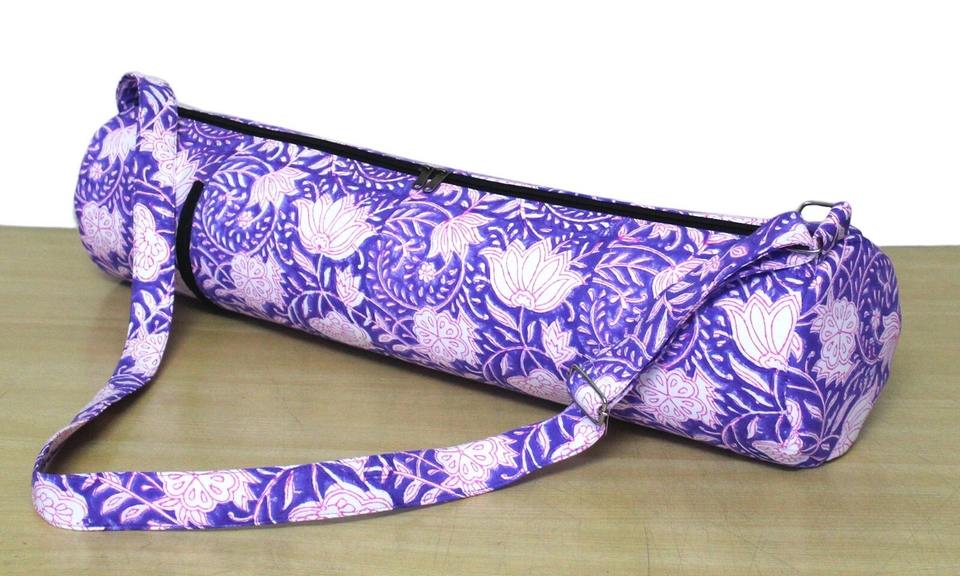 Purple Floral Indian Hand Block Cotton Quilted Yoga Mat Carrier Luxury Travel Bag with Shoulder Strap Lady Fashion Summer