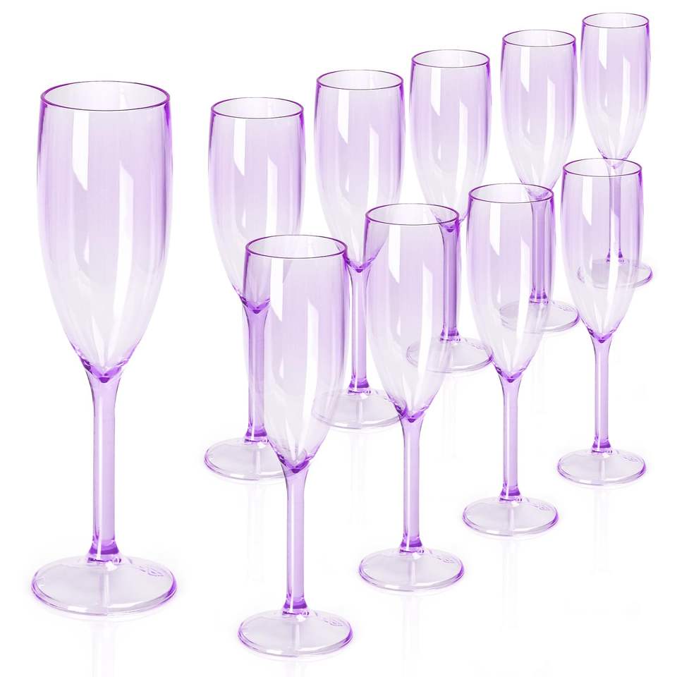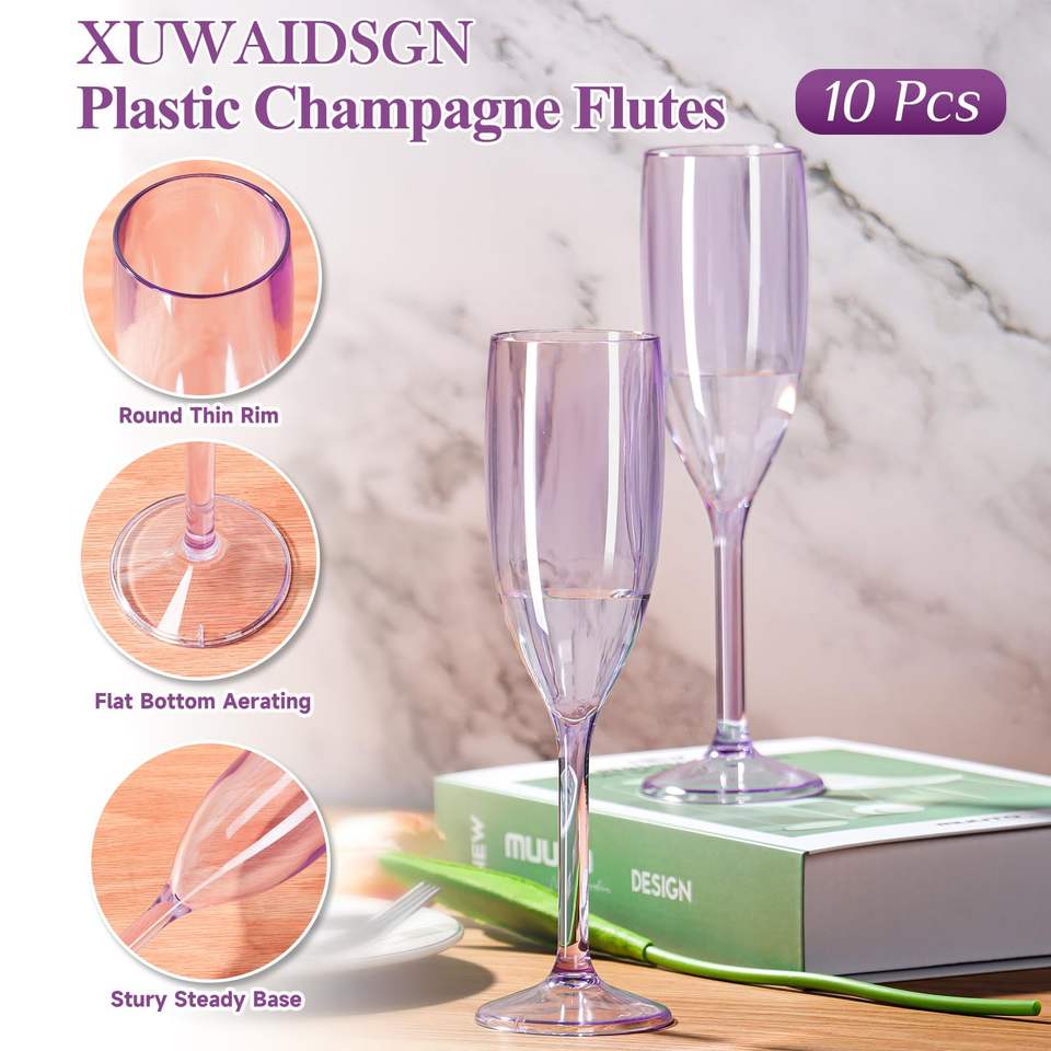 Purple Flutes Bulk 6oz Acrylic Goblet Wine Glasses Toasting Drinking Unbreakable Plastic High Stem Champagne Cups Goblet