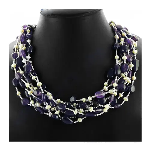 Purple Gemstone Jewelry-Amethyst & Pearl Beaded Necklace