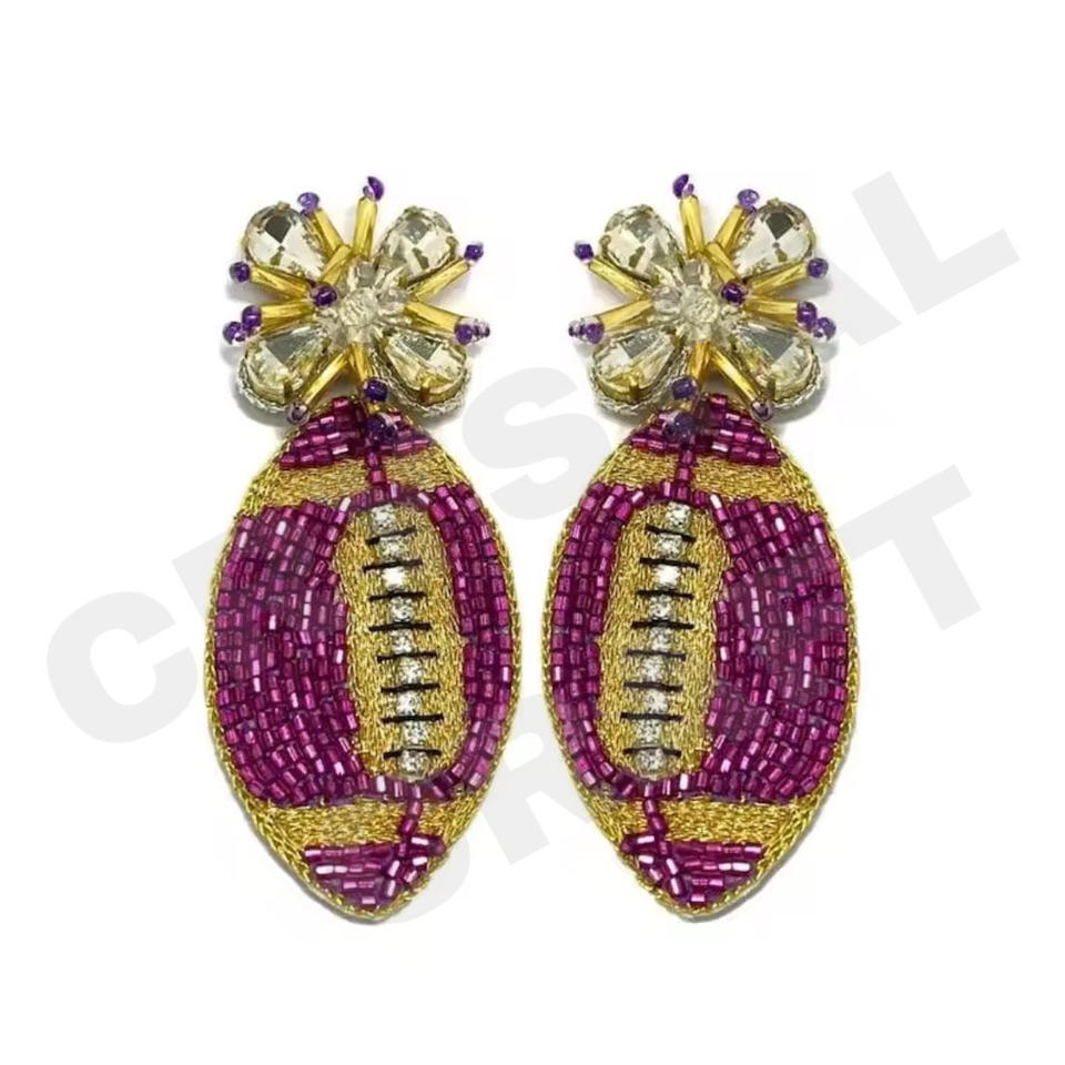 Purple Gold football Beaded Earrings for Women Patriotic Memorial Day Orange White Blue Colour Fabric Material