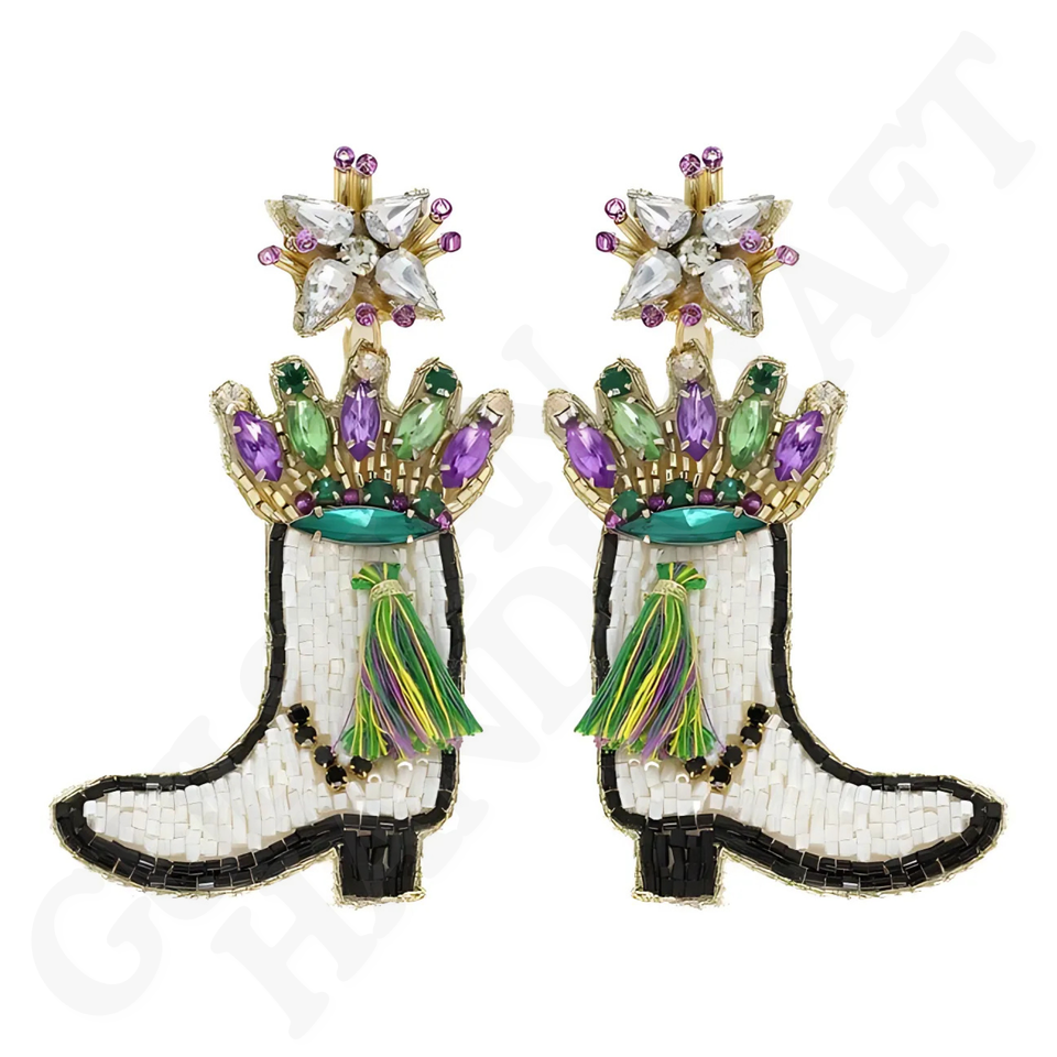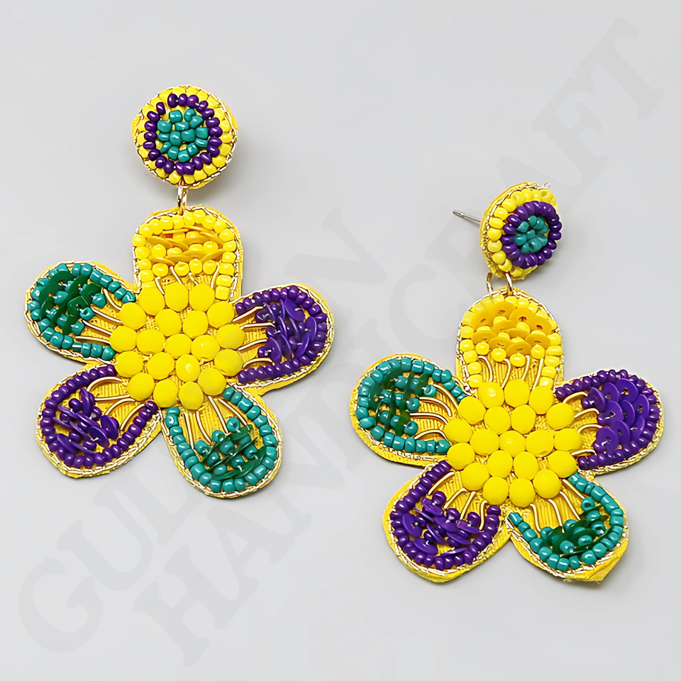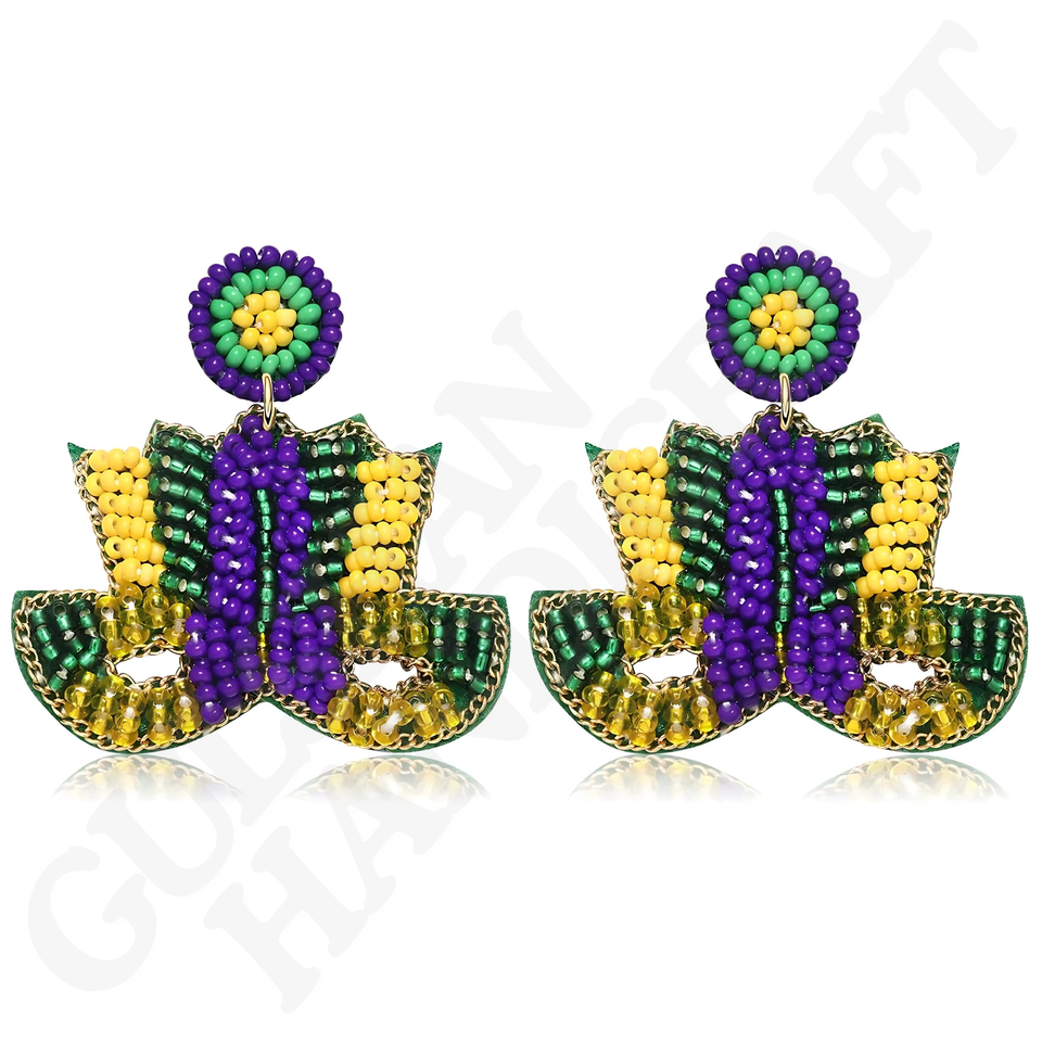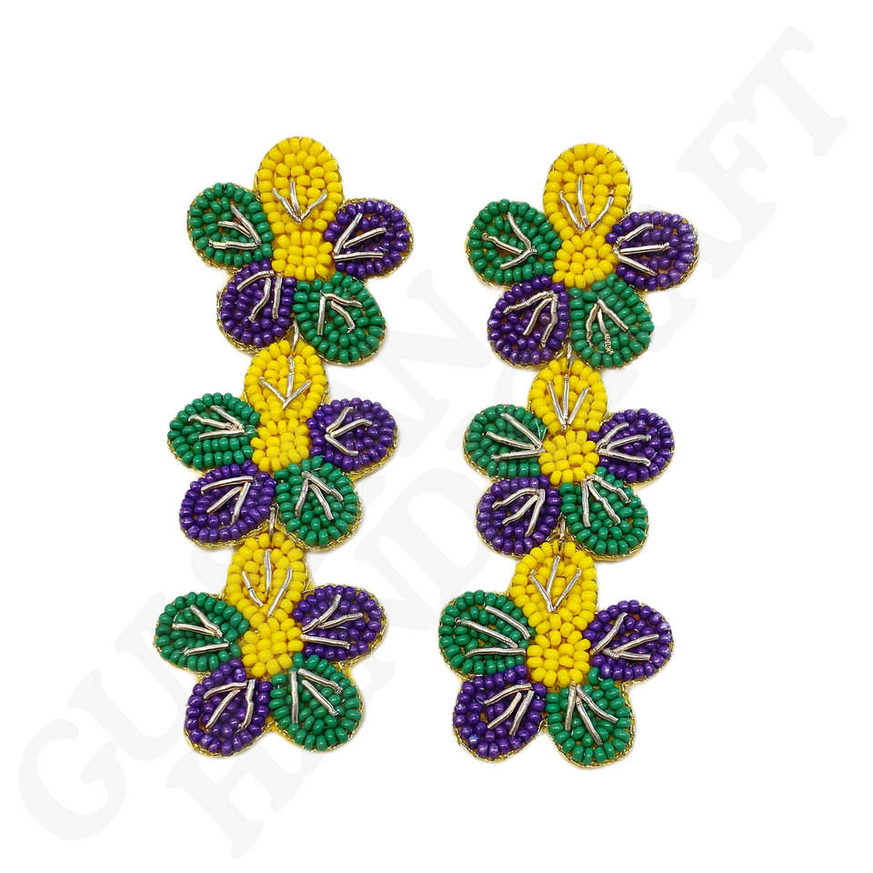 Purple Green Gold Beaded Drop Earrings for Girls Festive Accessory for Mardi Gras Carnival Parades & Celebrations