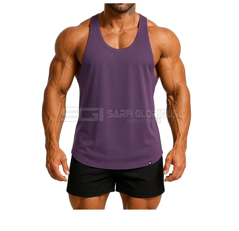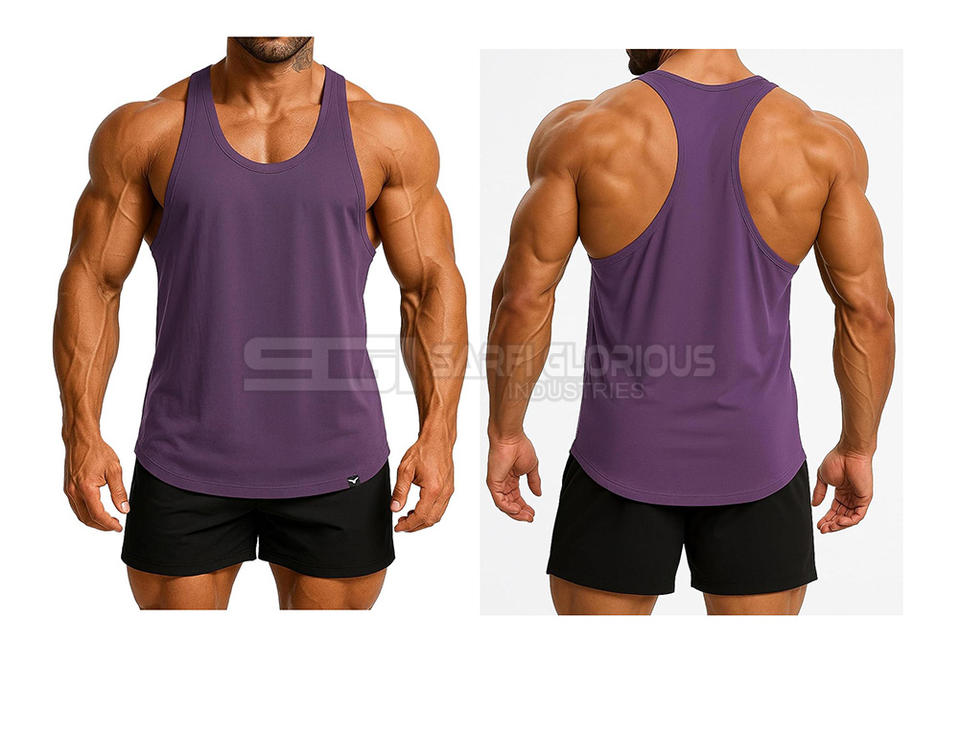 Purple Gym Singlet Men Cotton Spandex Workout Tank Top Sleeveless High Stretch Breathable Fitness Vest