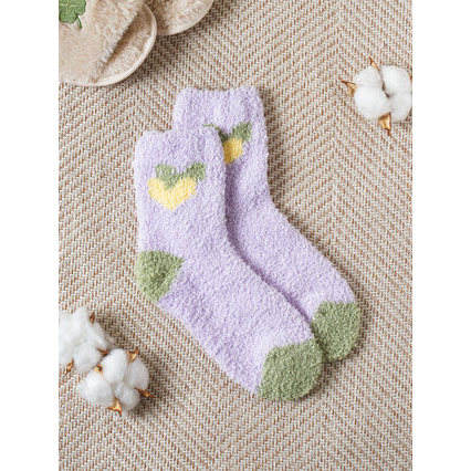 Purple Jacquard Sleep Socks Double Heart Pattern Winter One-Size Crew Ankle Length Knitted Breathable Custom Logo Packaged Bag