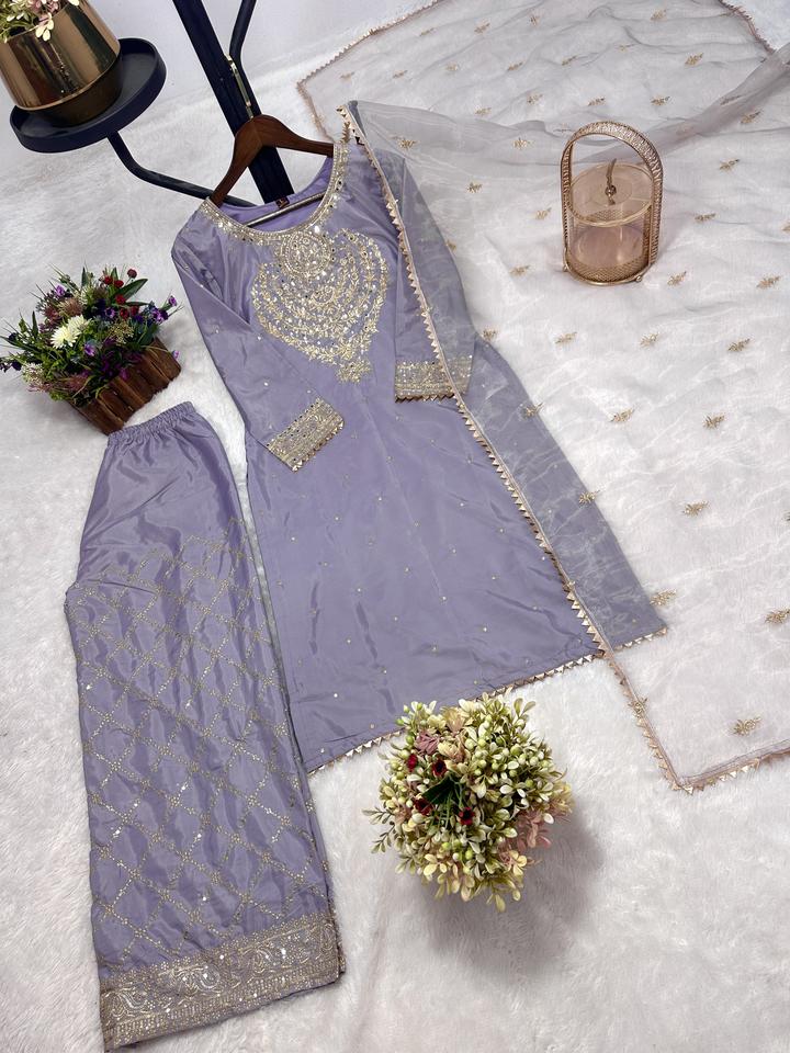 Purple Light Purple Sequence Embroidery Kurta Set for Wedding Parties Ethnic Indian Pakistani Dress