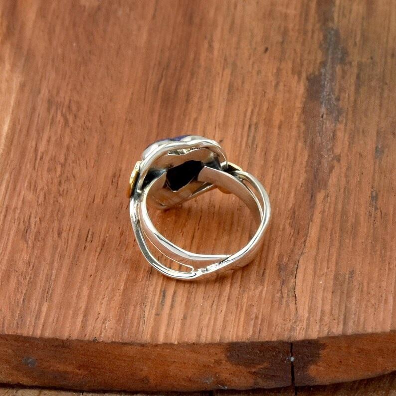 Purple Oyster Turquoise Heart Ring in Sterling Silver with Zigzag Band for Bridesmaid Gift